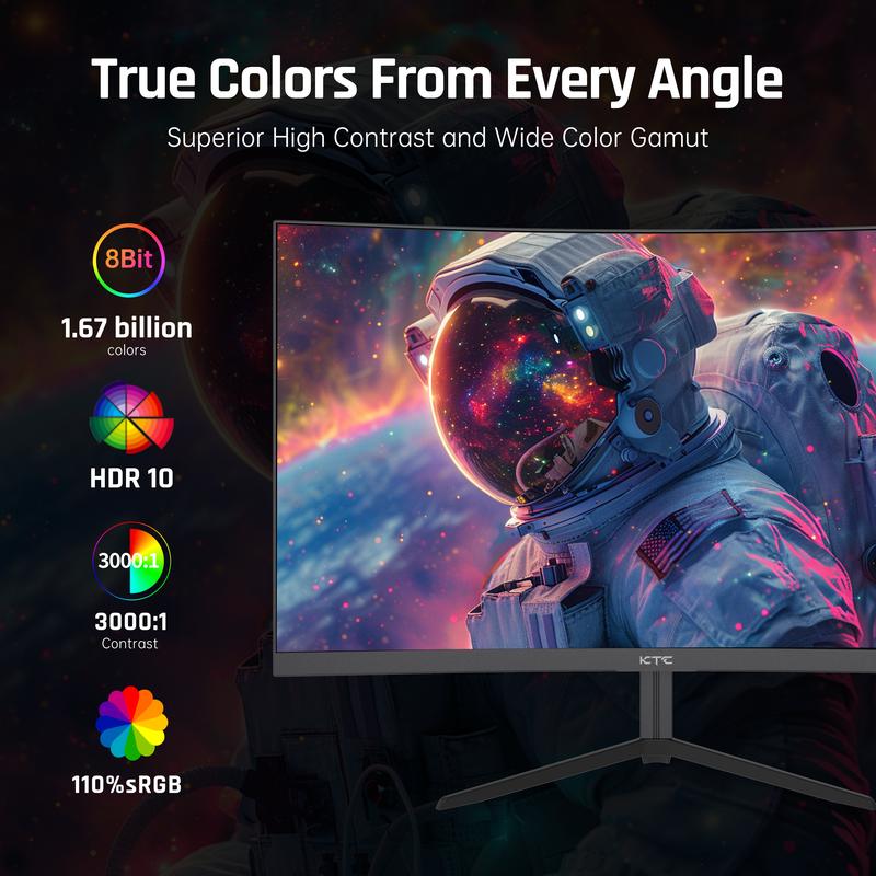 Curved gaming monitor has a brightness of 250cd/m², 8 bit, 16.7M color gamut, 3000:1 contrast ratio and 99% sRGB, providing you with rich colors and capturing more image details