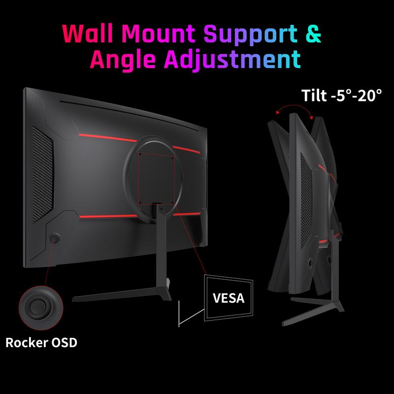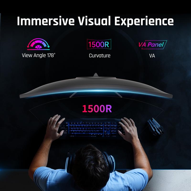 The curved gaming monitor supports Freesync & G-Sync, eliminates screen tearing and latency, providing a smooth and stable gaming experience.The comfortable curvature provides a wider perspective, allowing you to feel immersive experience of the game scene