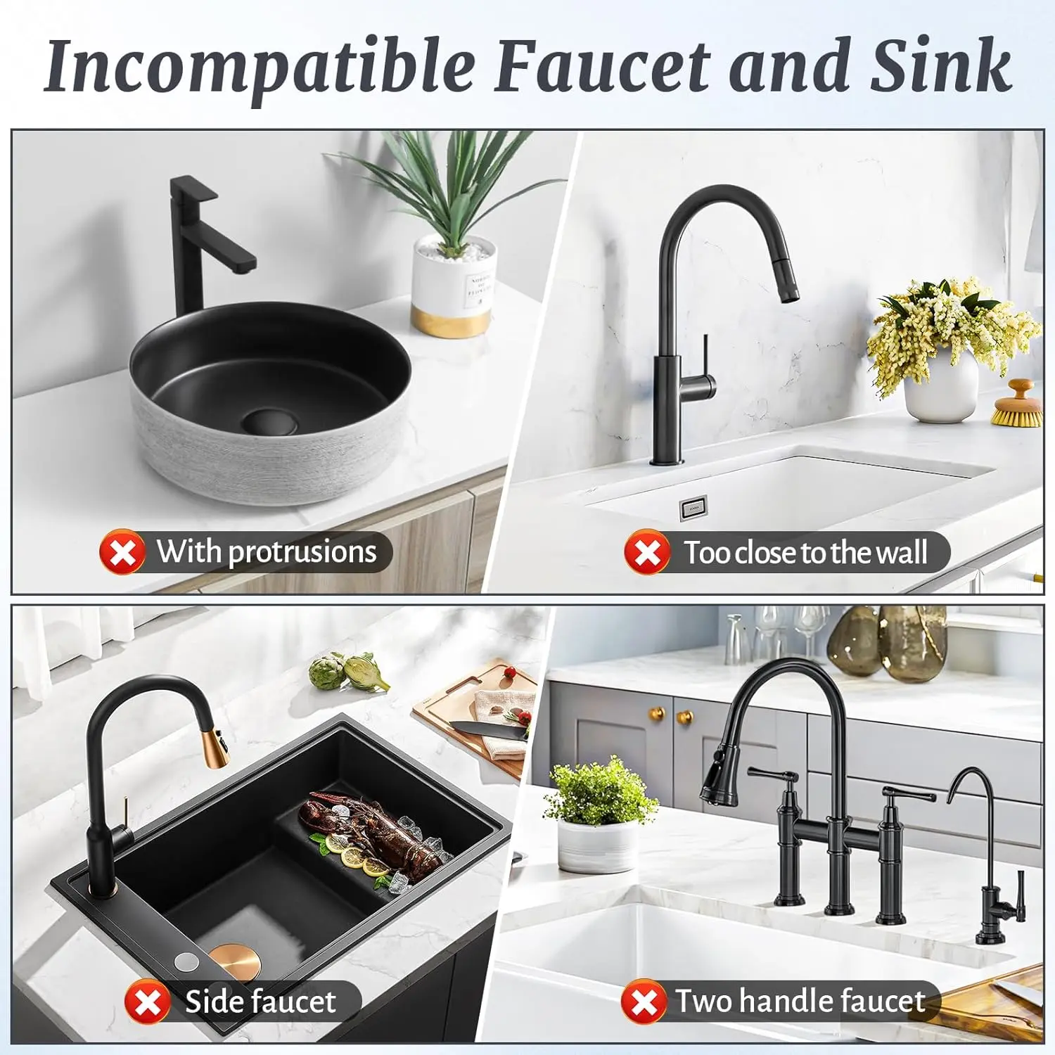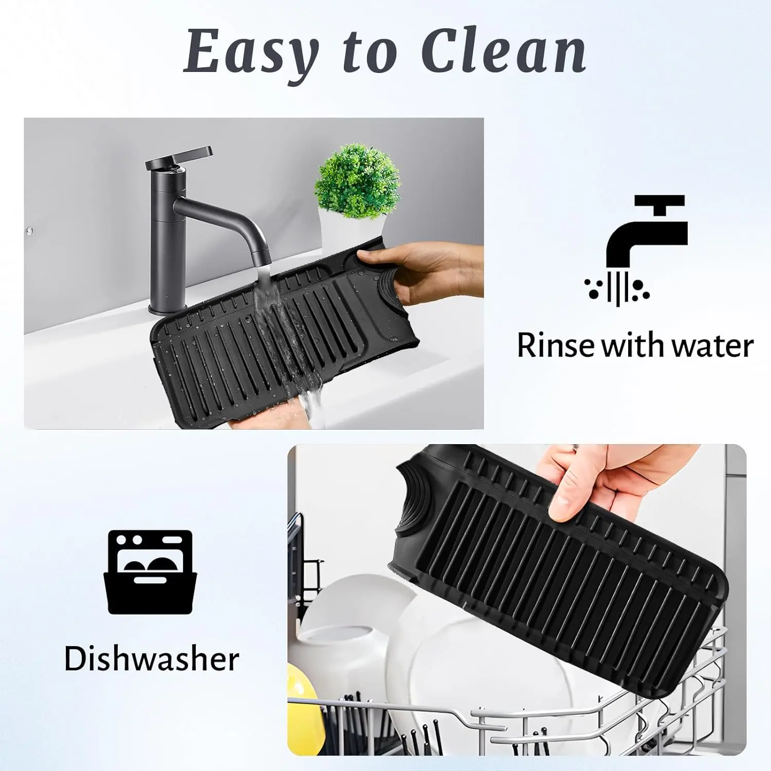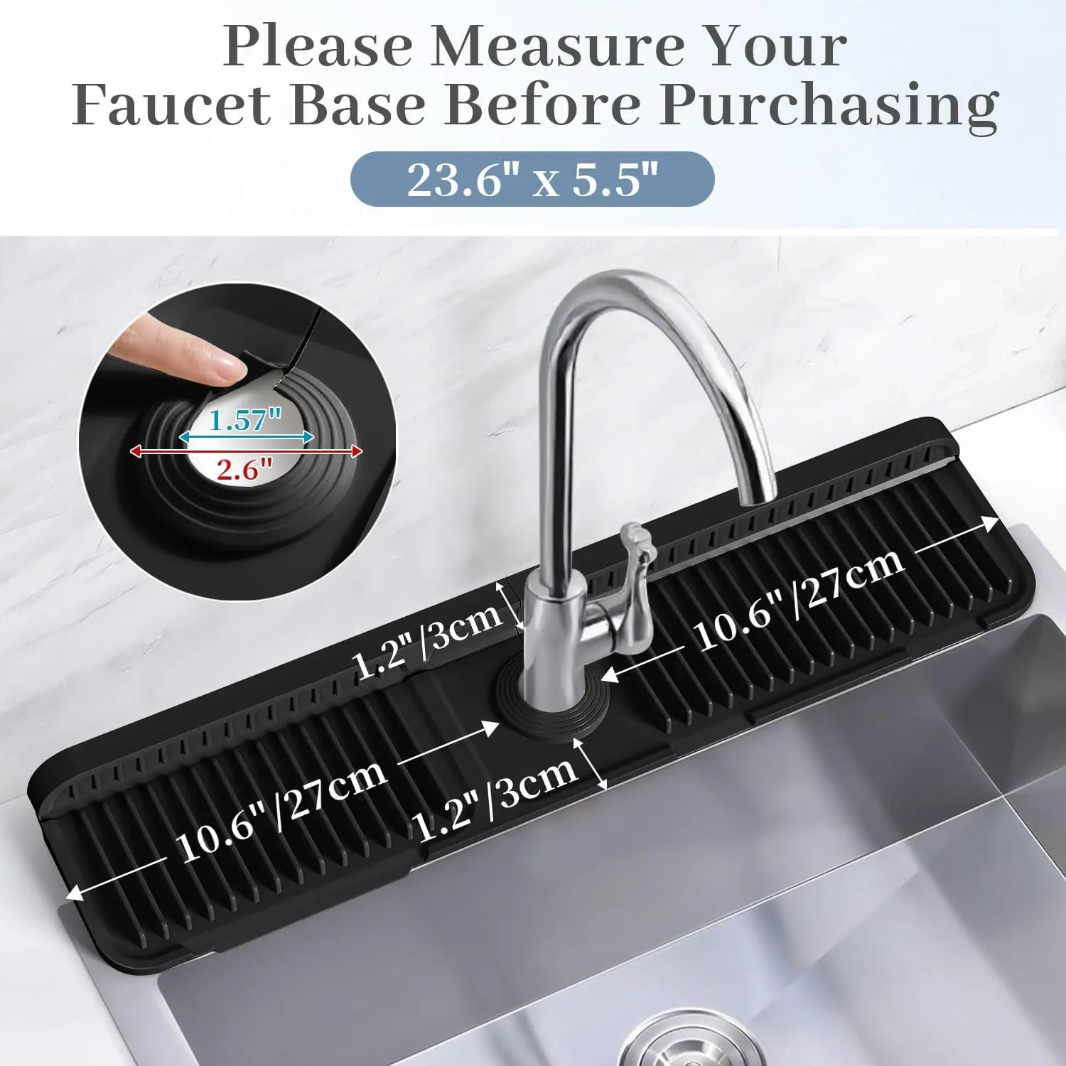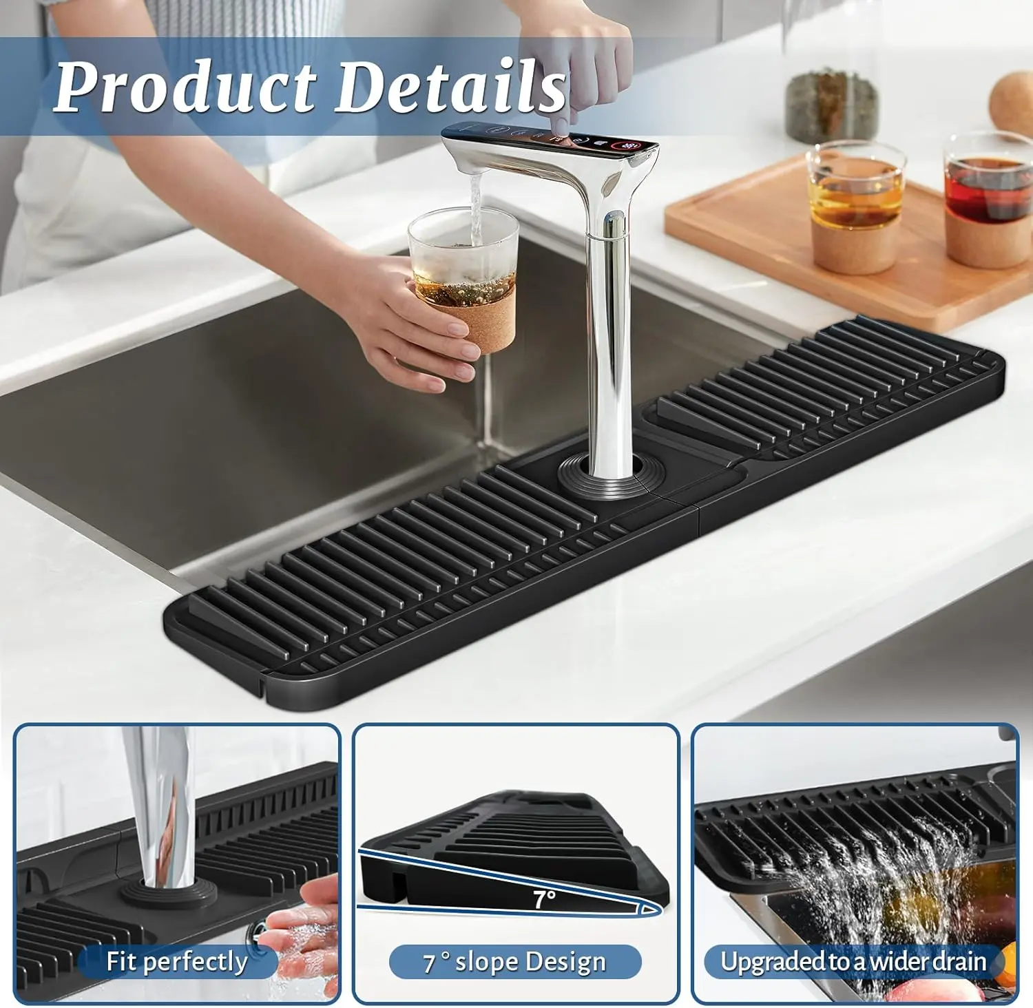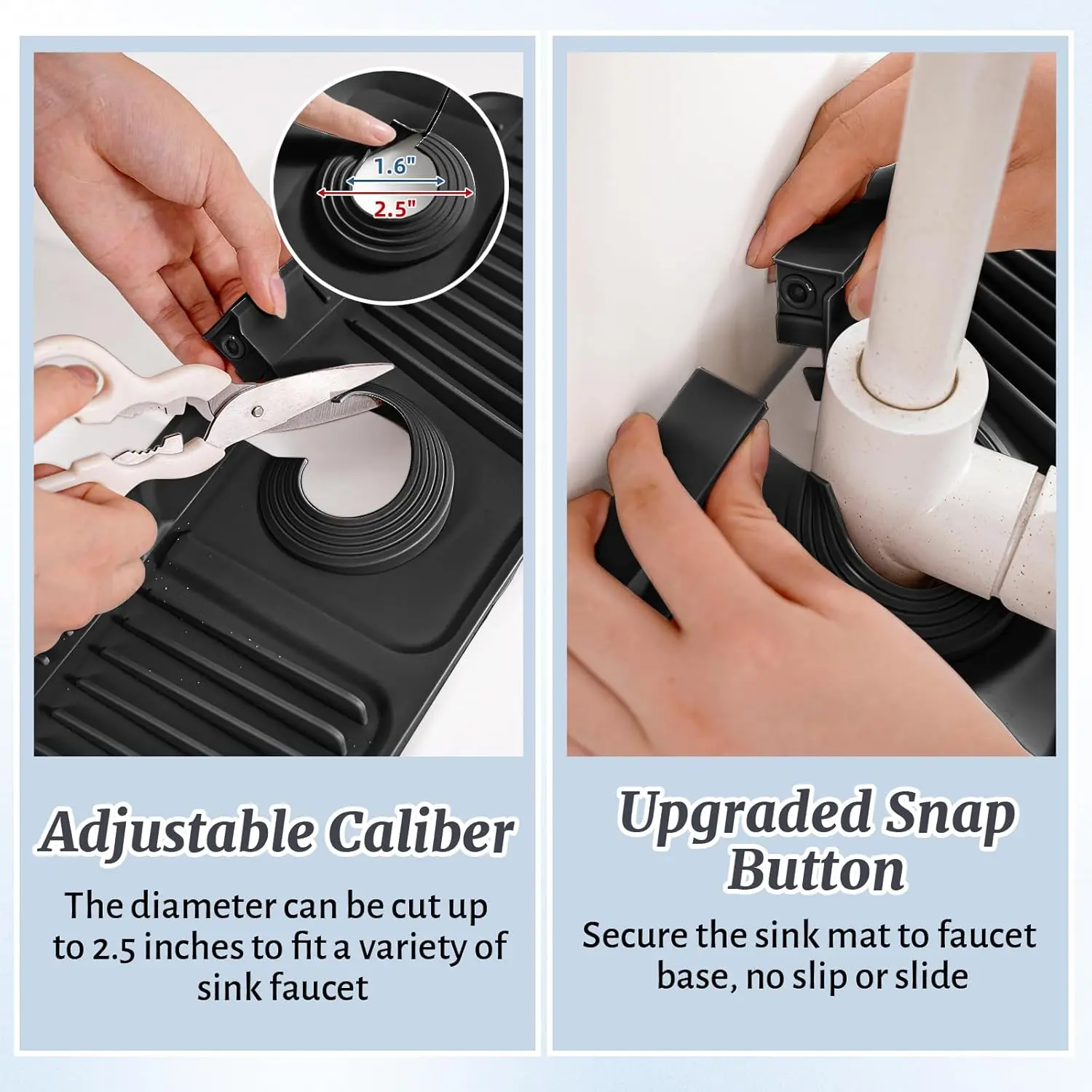 【Enhanced Design Sink Mats】The newly upgraded Sink Splash Guard 24-inch length fits perfectly into most sinks, the latest 5° slope design auto-drains keep countertops clean and free of standing water, the adaptive adjustable center hole diameter for 0.65-2.5" faucets, and the side-fold design eliminates the need to worry about gaps between walls and kitchen mats