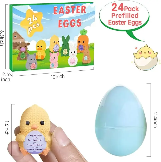 ✨ 24 Pack Pre Filled Easter Eggs are perfect for Easter basket stuffers and party favors. Each egg contains 3D printed Amigurumi animals, adding a fun twist to your Easter egg hunt. Ideal for kids, these eggs are great for Easter egg hunts and parties.