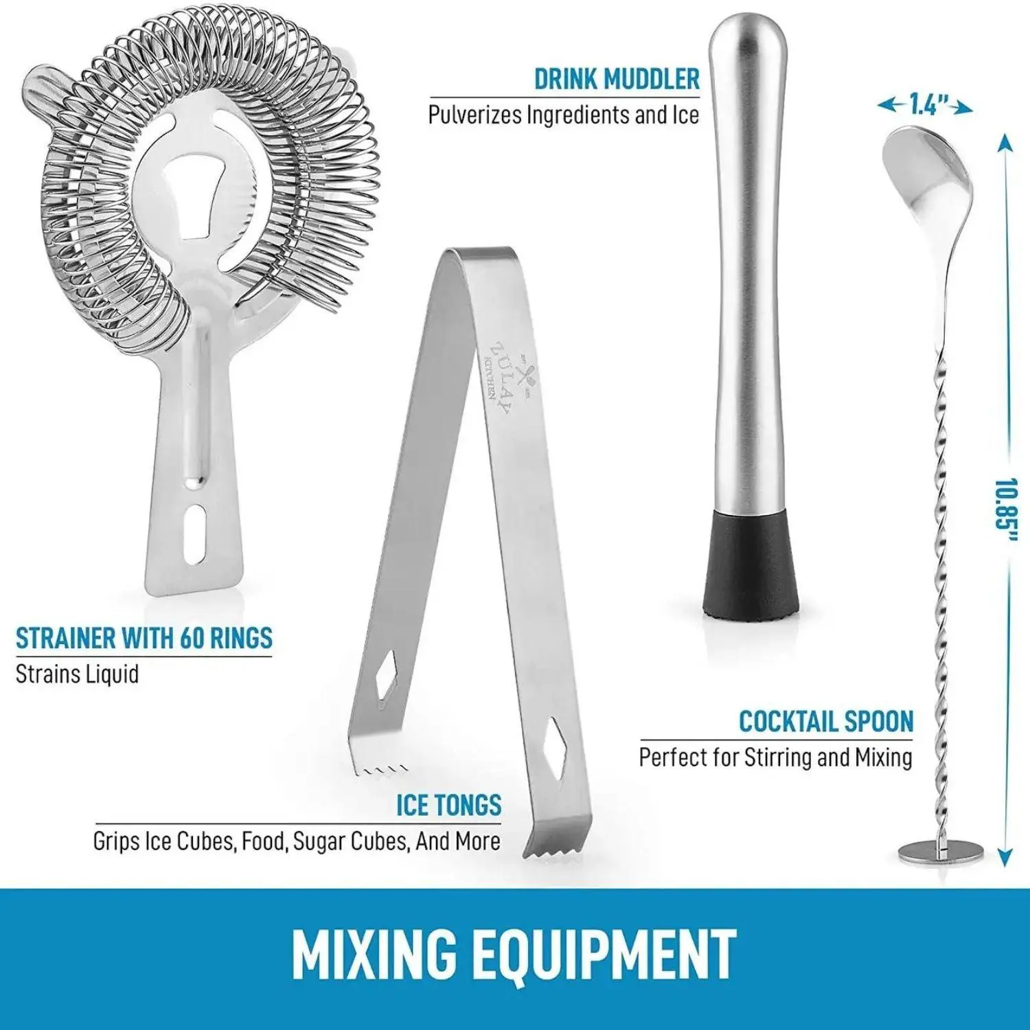 ·High-Quality Stainless Steel: Crafted from premium stainless steel, this bartender kit is rust-resistant and built to withstand frequent use, ensuring long-lasting performance for all your mixing needs.