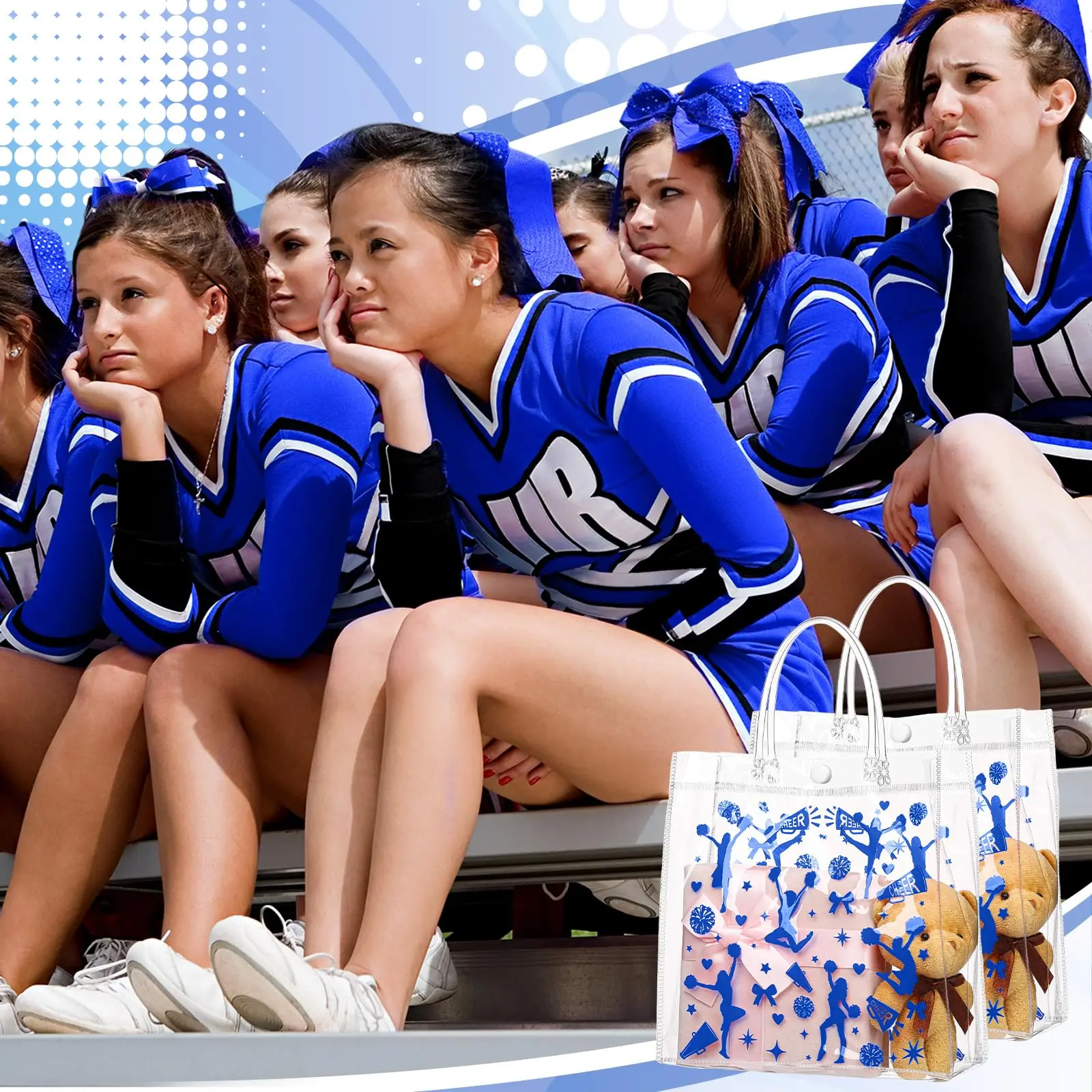 · Durable Craftsmanship: crafted from PVC material, these cheerleading goodie bags offer durability and feature reinforced handles that resist breakage, securely holding your items and preventing accidental drops.