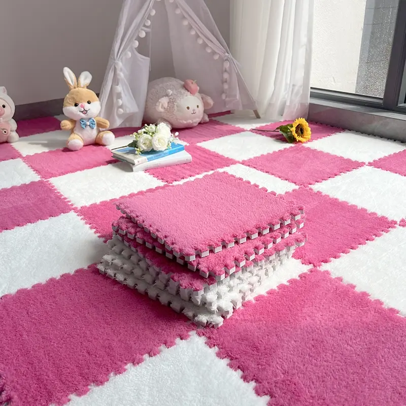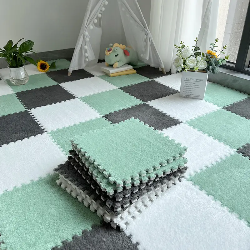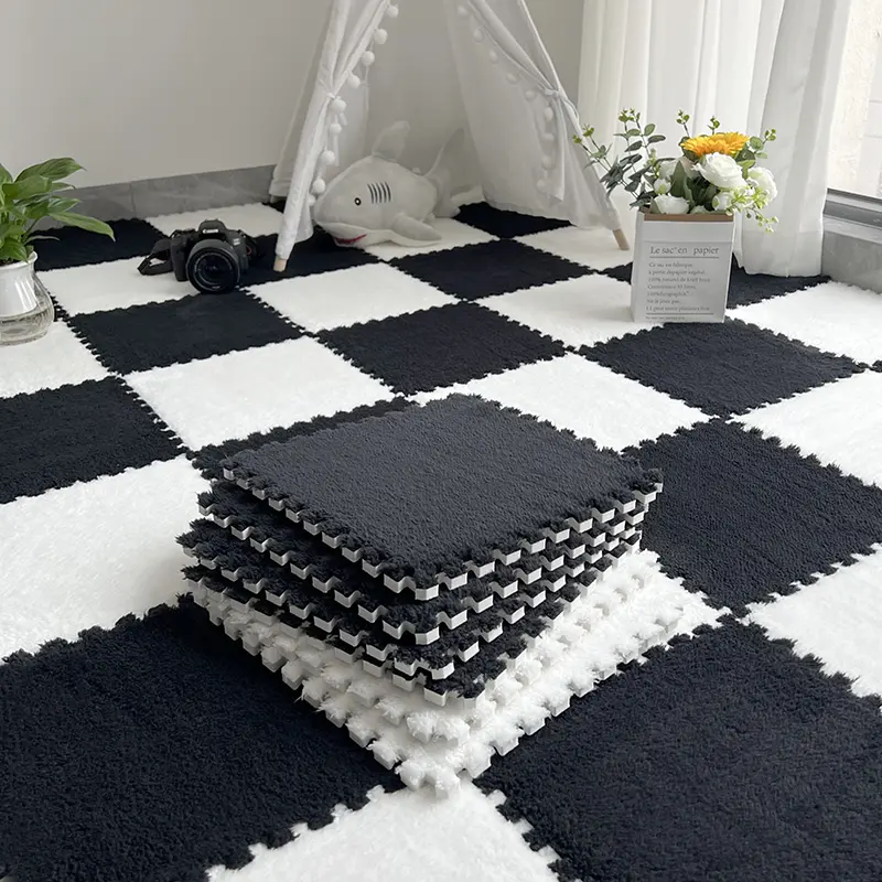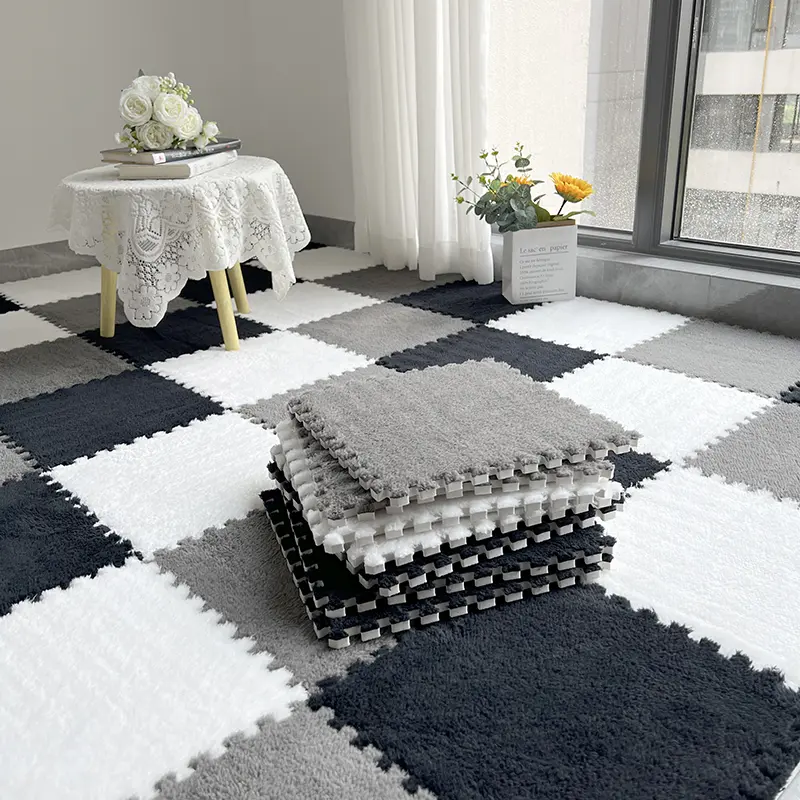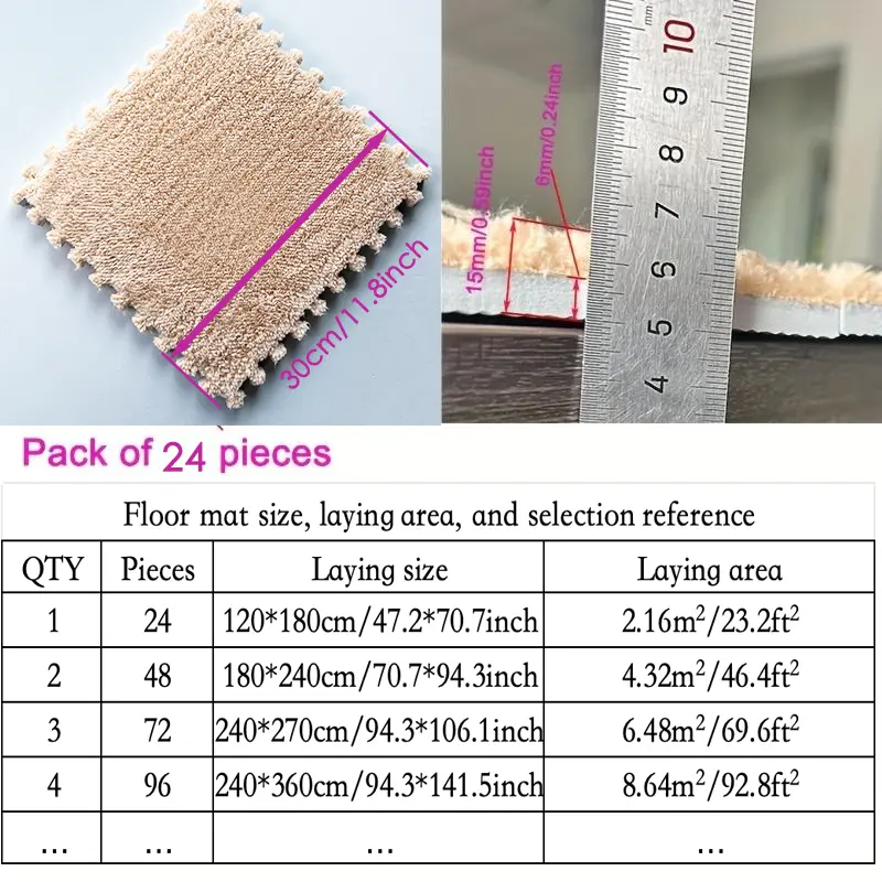 24-Piece Long Pile Patchwork Rug Set, Washable Floor Mat, Interlocking Mats for Bedroom & Living Room, Home Use, 6mm Eva Foam Base, Carpet Mats