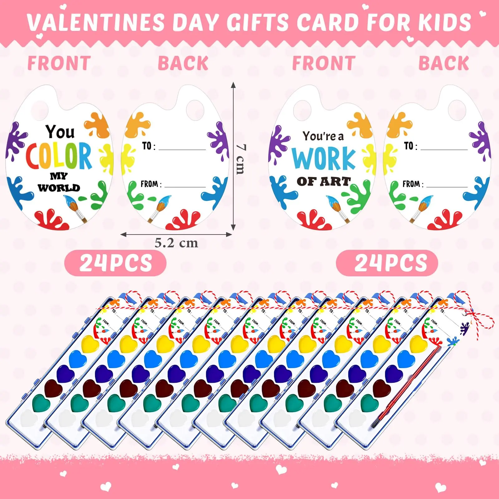 ·Valentine's Day Themed Card Set: receive 24 pcs Valentine's Day gift cards, 24 pcs watercolor paint sets, and 24 gold foil ropes to meet your various gift needs and sufficient quantities can make you paint or share them with family members or friends on Valentine's Day