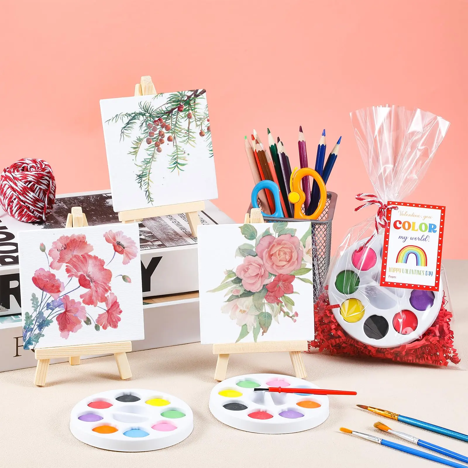 ·Package Includes: you will receive 12 sets of Valentine mini paint including 12 mini canvases, 12 mini easels, 12 paint trays, 12 paint brushes, 12 plastic bags, 12 Valentine's Day theme cards, 1 rope, and 100g red raffia paper filaments, you can painting at canvas as a gift to express your love