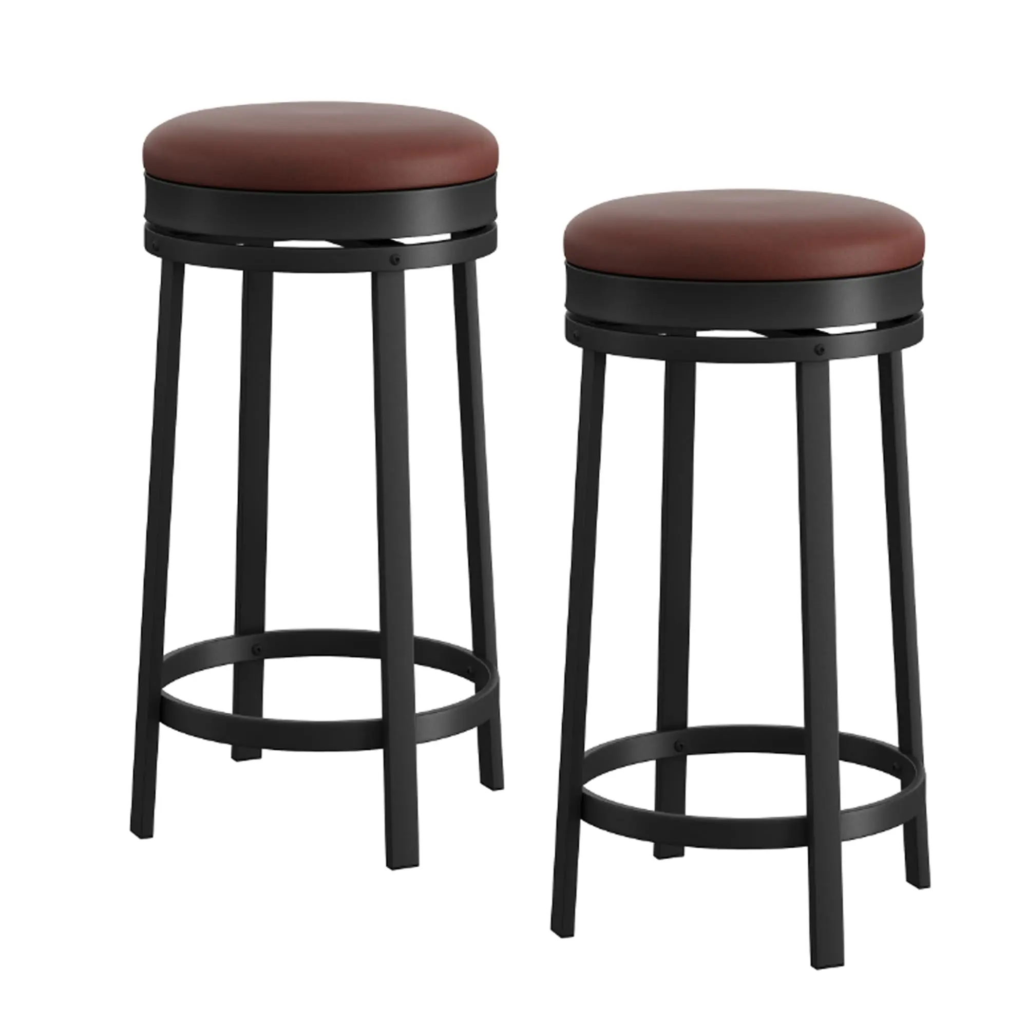 5. GARVEE 24'' Swivel Bar Stools Set of 2 with Footrest, Modern Counter Height Barstools with PU Leather Upholstered and Metal Frame, Backless Round Bar Stools for Kitchen Island, Brown