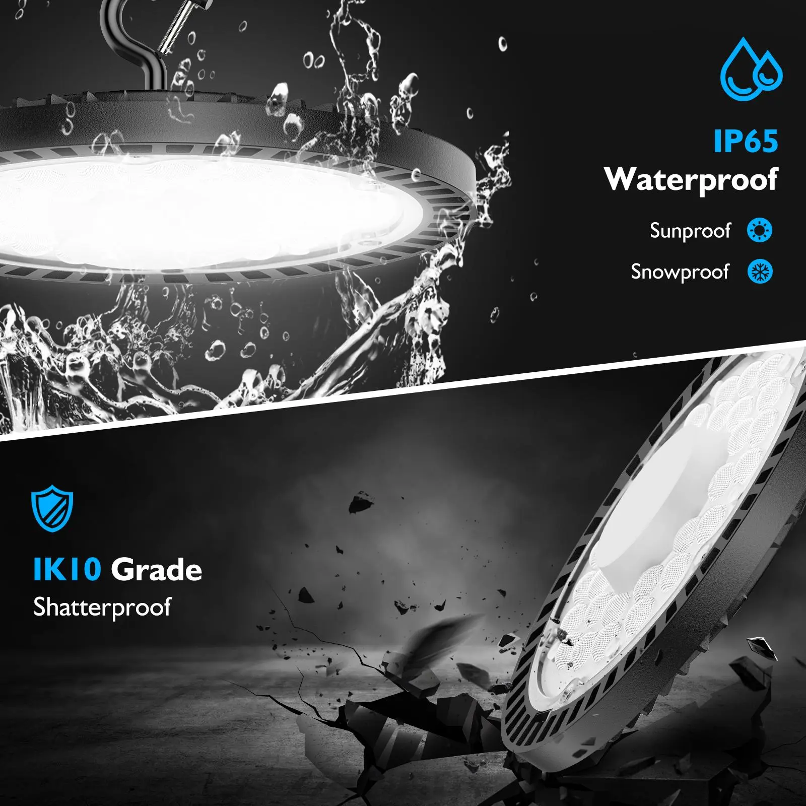 ·Great for indoor and outdoor lighting, such as workshops, factories, warehouses, basements, gyms, and large commercial places.