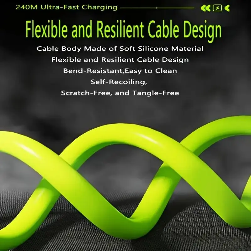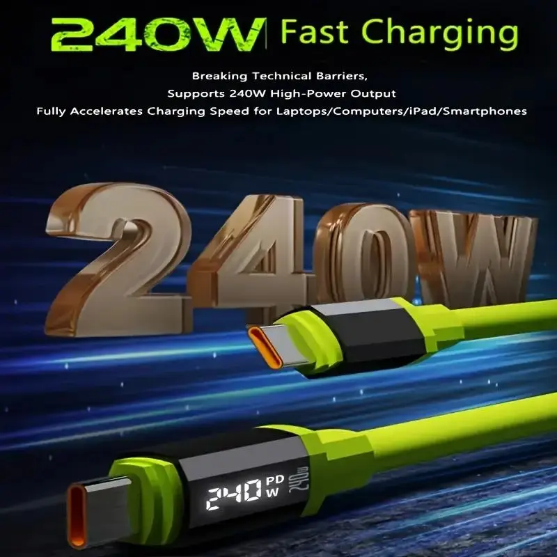 240W Fast Charging Cable, Mobile Data Cable, Smart Quick Charge, High-Power Fast Charging, Super Fast Charge, Compatible with Apple Type-C Charging Smartphone Cellphone