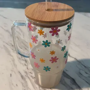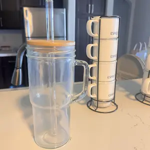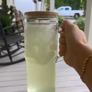 【SAFE MATERIAL,EASY TO CLEAN】- The 24oz glass tumbler with handle made of premium thickened glass, food grade natural bamboo lid, and glass straw, BPA free, more sturdy and durable, dishwasher safe, this reusable boba cup features a wide mouth Designed with straw brush, it is very easy to clean and looks stylish and sophisticated.