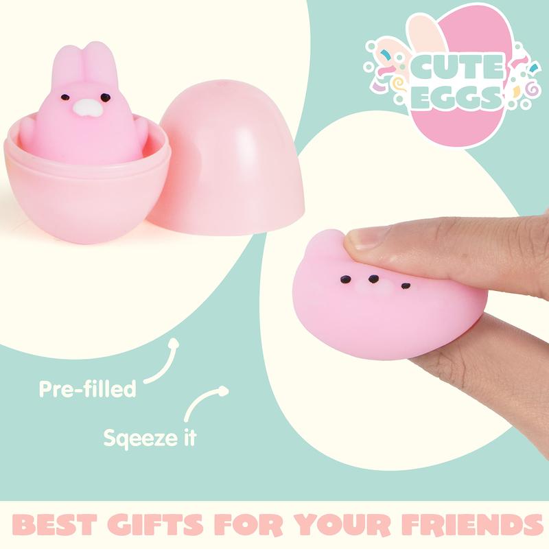 ·SUPER VALUE PACK. Our squishy toy Set includes 24 pcs prefilled easter egg in 2.36inch includes 24 pcs Mochi. Tiny Mochi Unicorn squishy toy, Bear squishy toy, Adorable Cat squishy toy, Fat Bunny squishy toy, etc. Best selection of animal-themed toys. Extra Cute!