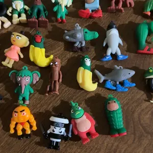 These are so precious and cute that you're going to want to stick one of them in your pocket to make you smile they are palm size. Made of strong rubber like, cute toys, my kids love them.