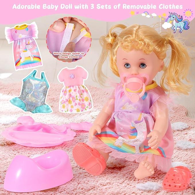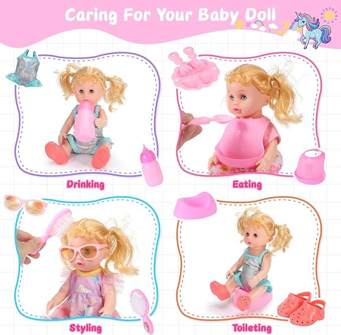 This is a cheap looking doll set. But for a 5yr old we will make do. I think she will love it. But I say size up. Lol...