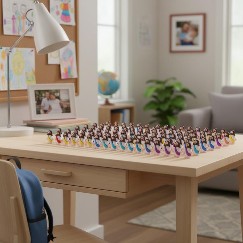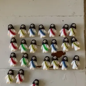 You will receive 25 Jesus figurines in a classic robe design, available in five colors: red, blue, purple, green, and white, with random color distribution. Each figurine measures approximately 1.2 × 1.4 inches (3 × 3.5 cm). The generous quantity meets your daily use and replacement needs and is perfect for sharing with others.