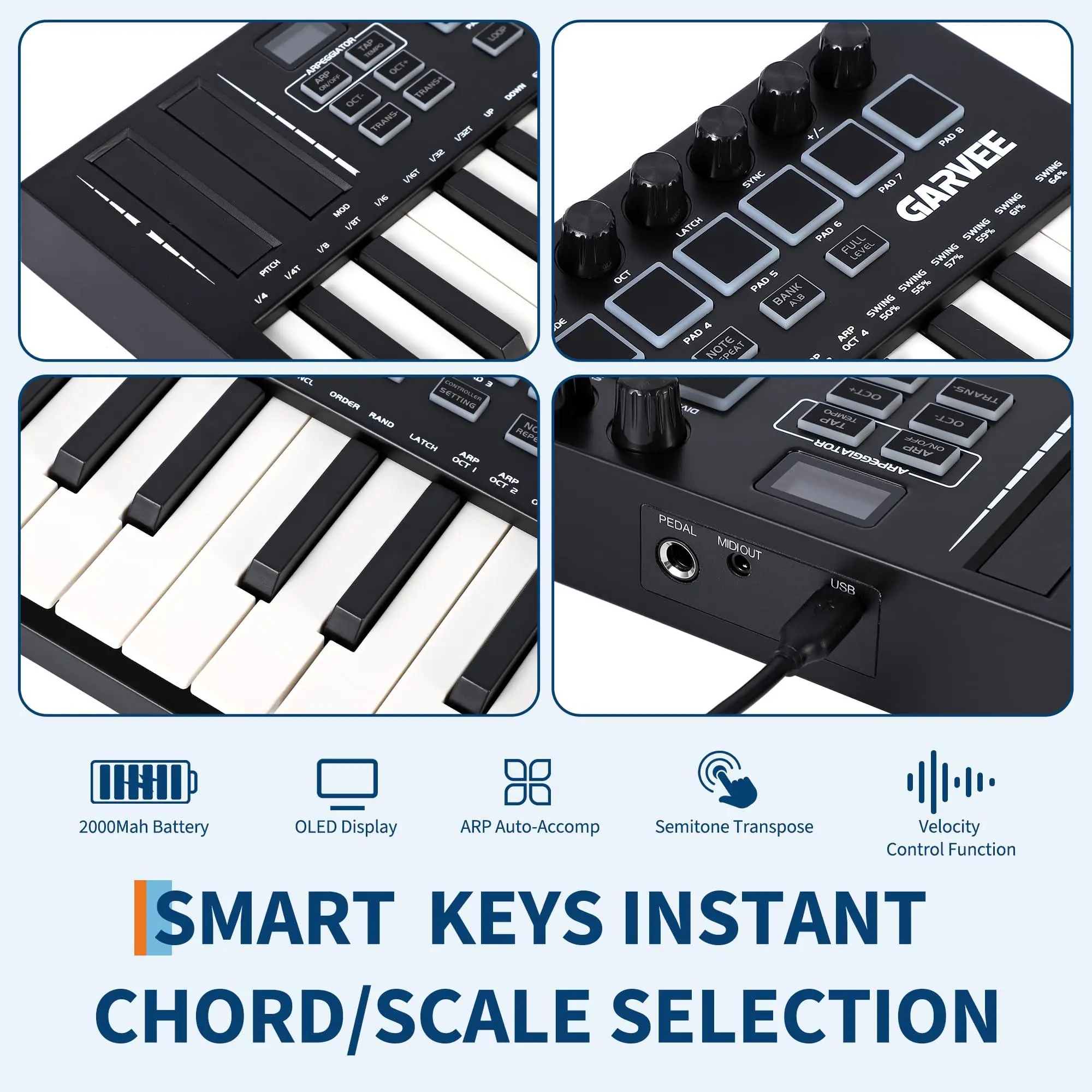 Innovative Smart Key Features: Unlock creative possibilities with an intuitive OLED display, ARP auto-accompaniment, velocity control, and semitone transpose—making your workflow faster and your music more dynamic than ever before