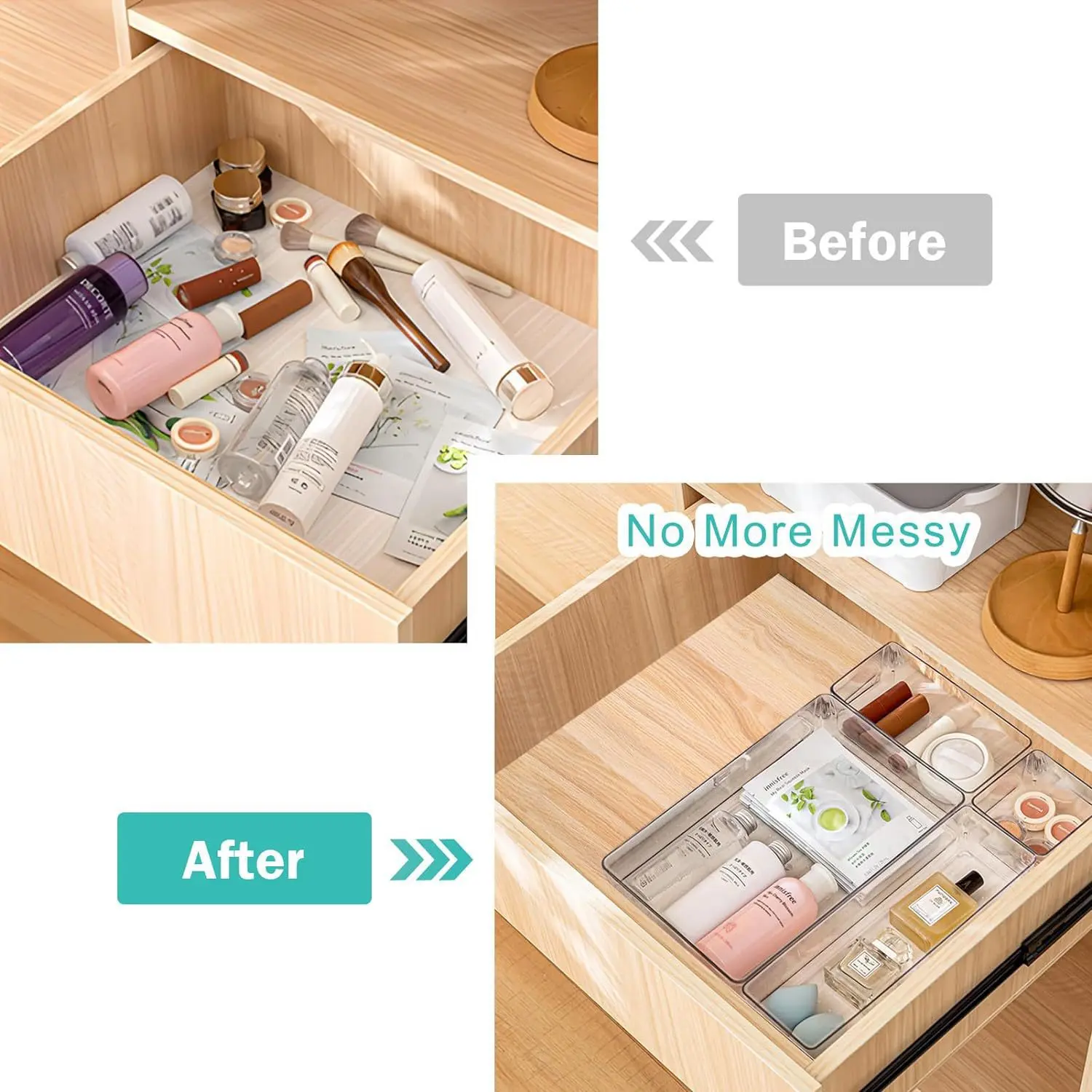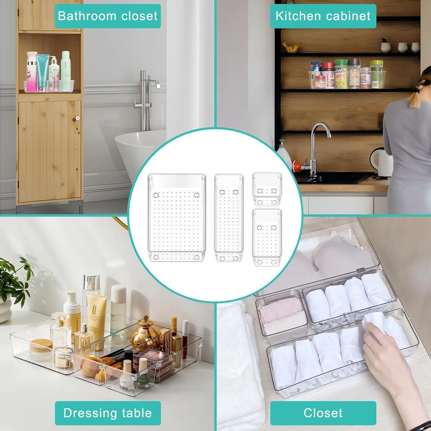 ·Premium Material:The drawer organizer is made of non-toxic plastic which may be safely used. The transparent design makes it easy to find what you need quickly.