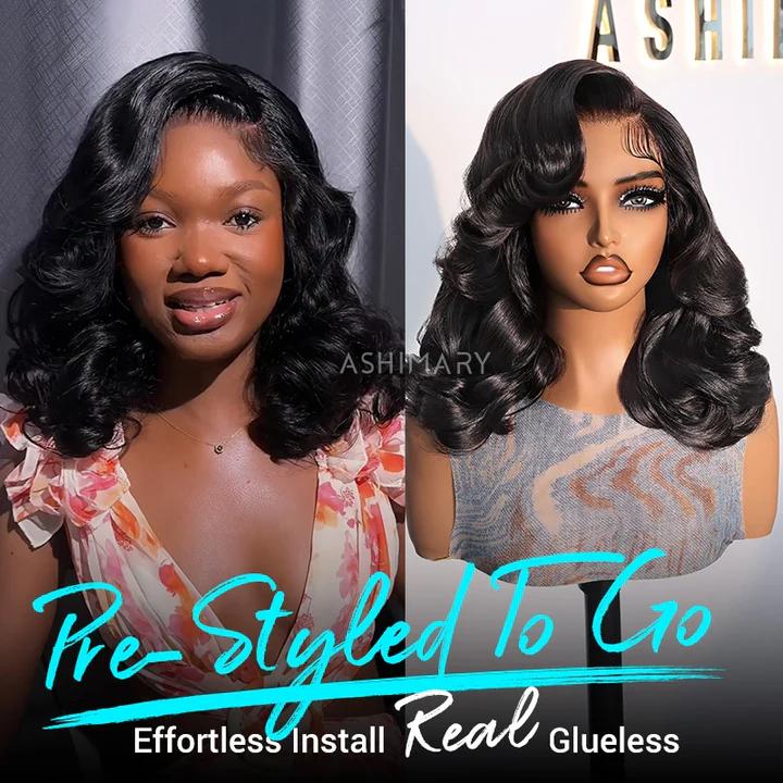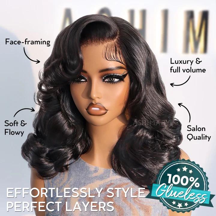 This pre- styled body wave layer cut wig the quality is amazing no glue needed at all il 😍 I love it