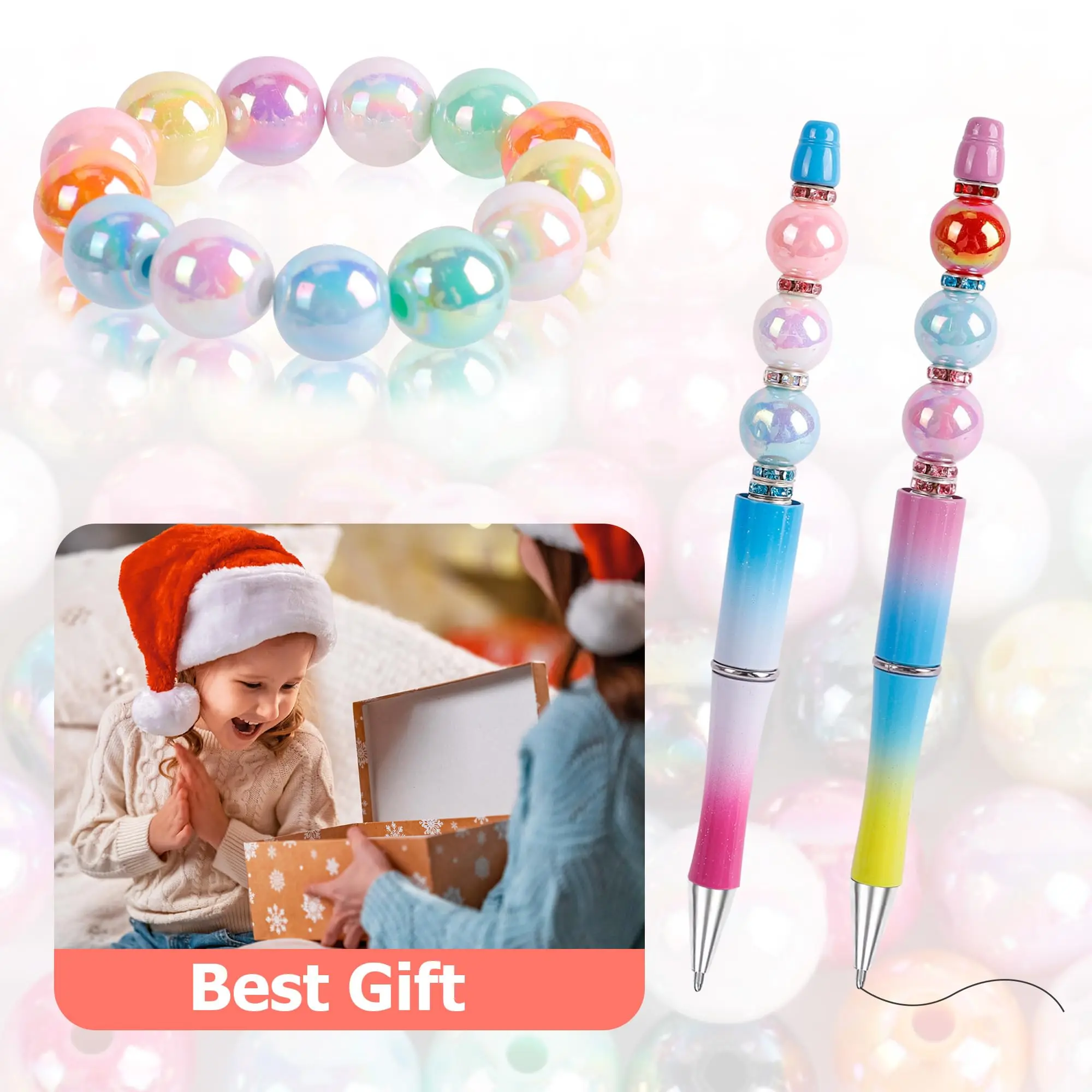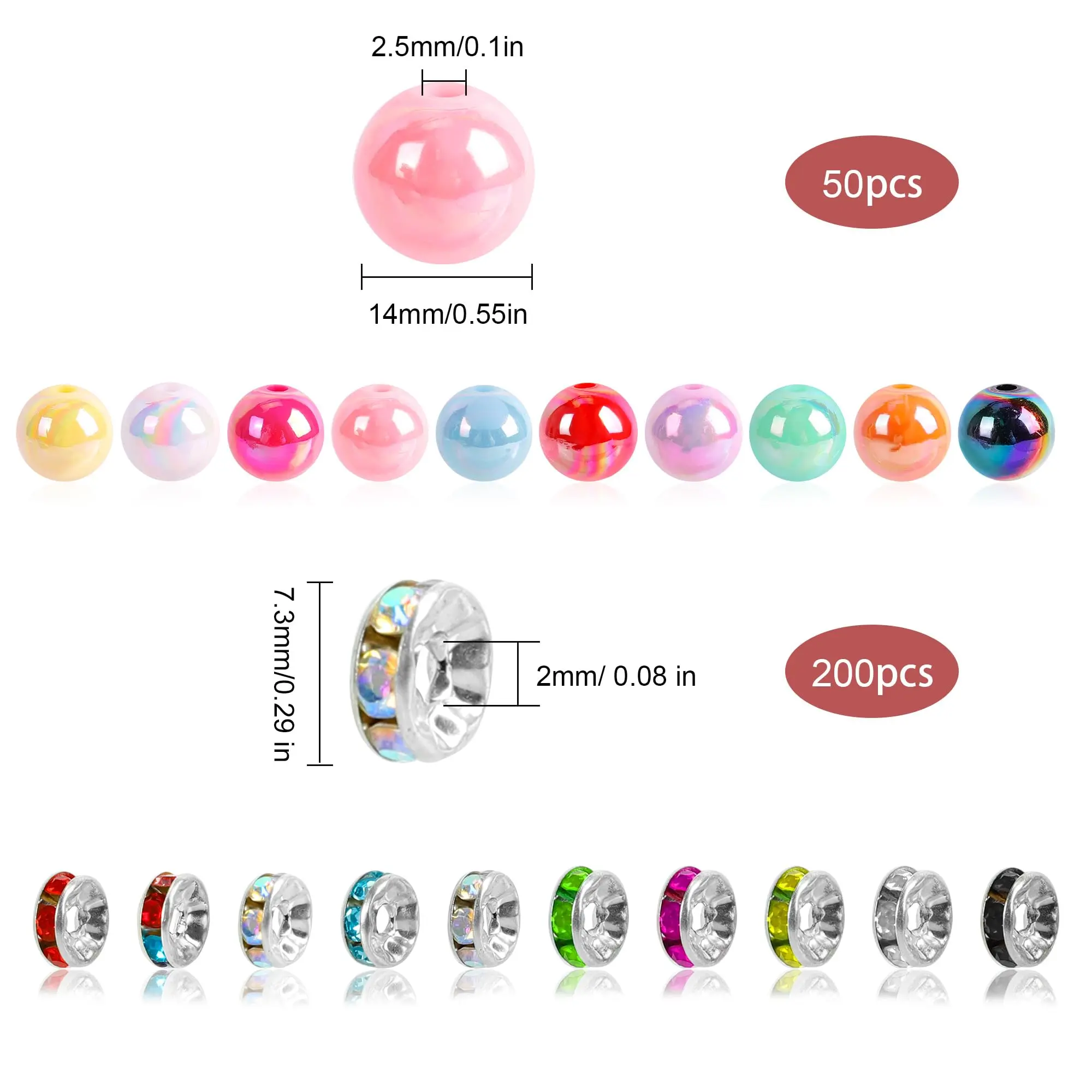 These rainbow beads are versatile for various decorations including pens, bracelets, necklaces and more. They add sparkle to home decor, birthday parties, and other creative projects like clothing and accessories. Their bling effect enhances any item they adorn, ensuring a glamorous finish