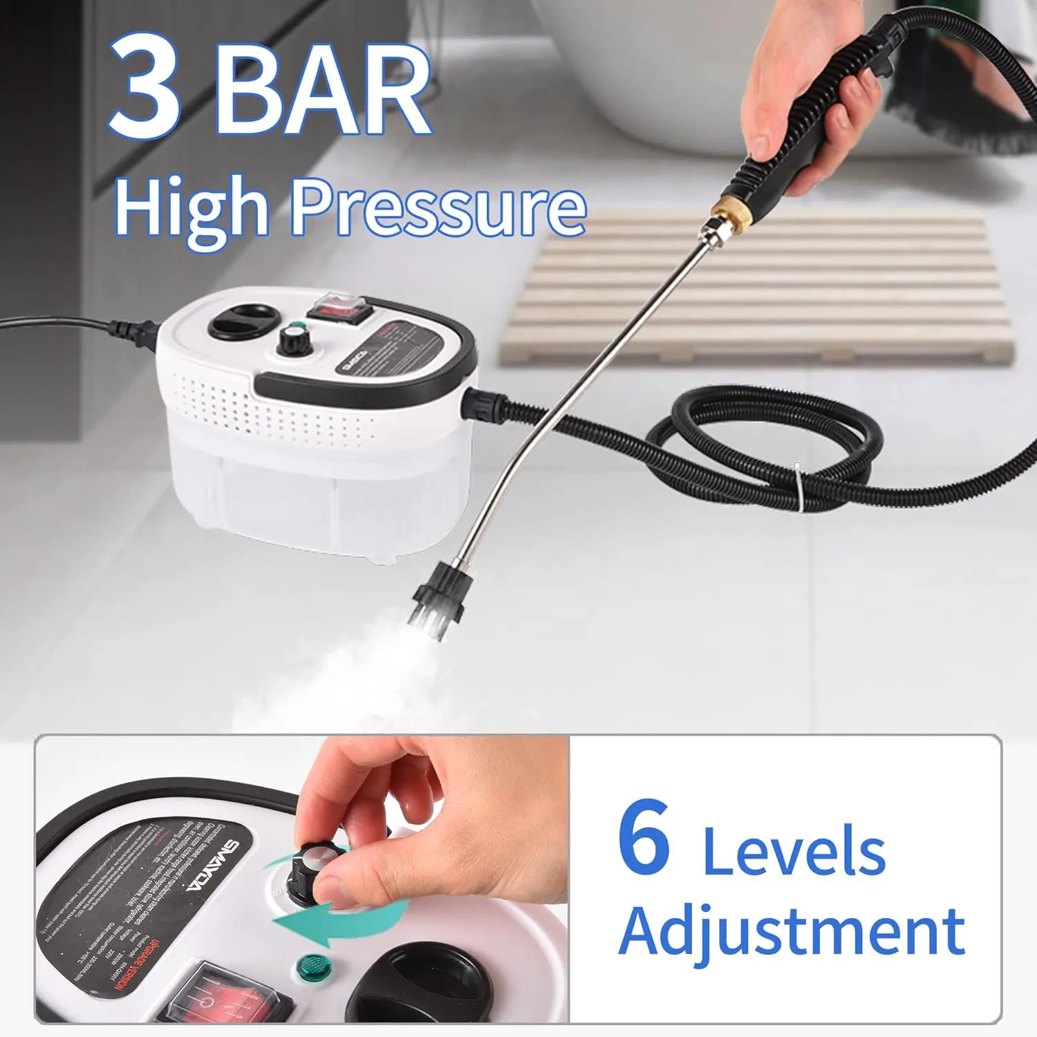 Natural & Safe: Our steam cleaners are 100% natural and have no harmful fumes or residues. Suitable for children and pets, providing a healthy and eco-friendly cleaning solution for whole-house cleaning: The handheld steam cleaner is a versatile, multi-purpose cleaning tool that uses high-temperature steam to remove stains from a variety of surfaces without producing harmful fumes or residues. It's great for cleaning hard-to-reach crevices, corners, angles, and a variety of surfaces and materials, including kitchen sinks, barbecue grills, toilets, shower curtains, flooring, children's toys, pet mattresses, cars, sofas, and clothing. Enjoy a healthier, cleaner home with powerful, chemical-free cleaning that is portable and efficient: With its compact, handheld design, you can easily take this steam cleaner anywhere for quick tasks, including home, office, garage, and more. The 9.8-foot power cord ensures efficient operation, and its lightweight design makes it easy to carry from one room to your home