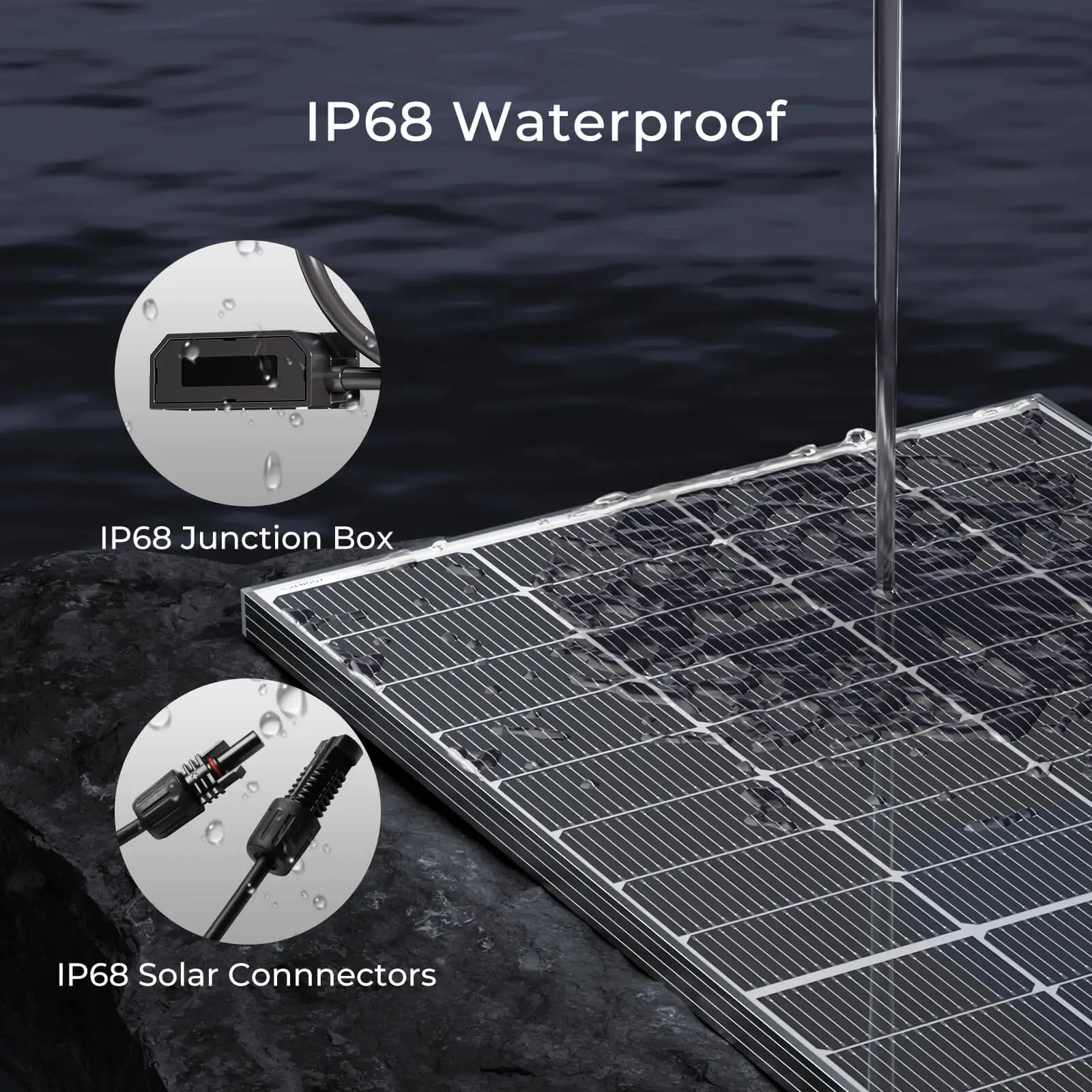 ·【Built to Last】 Equipped with IP68 protection, the Renogy 250W N-Type Bifacial Solar Panel is designed to endure snow, rain, and heat for decades. With low-iron tempered glass and corrosion-resistant aluminum frame, it ensures exceptional performance in all weather conditions.