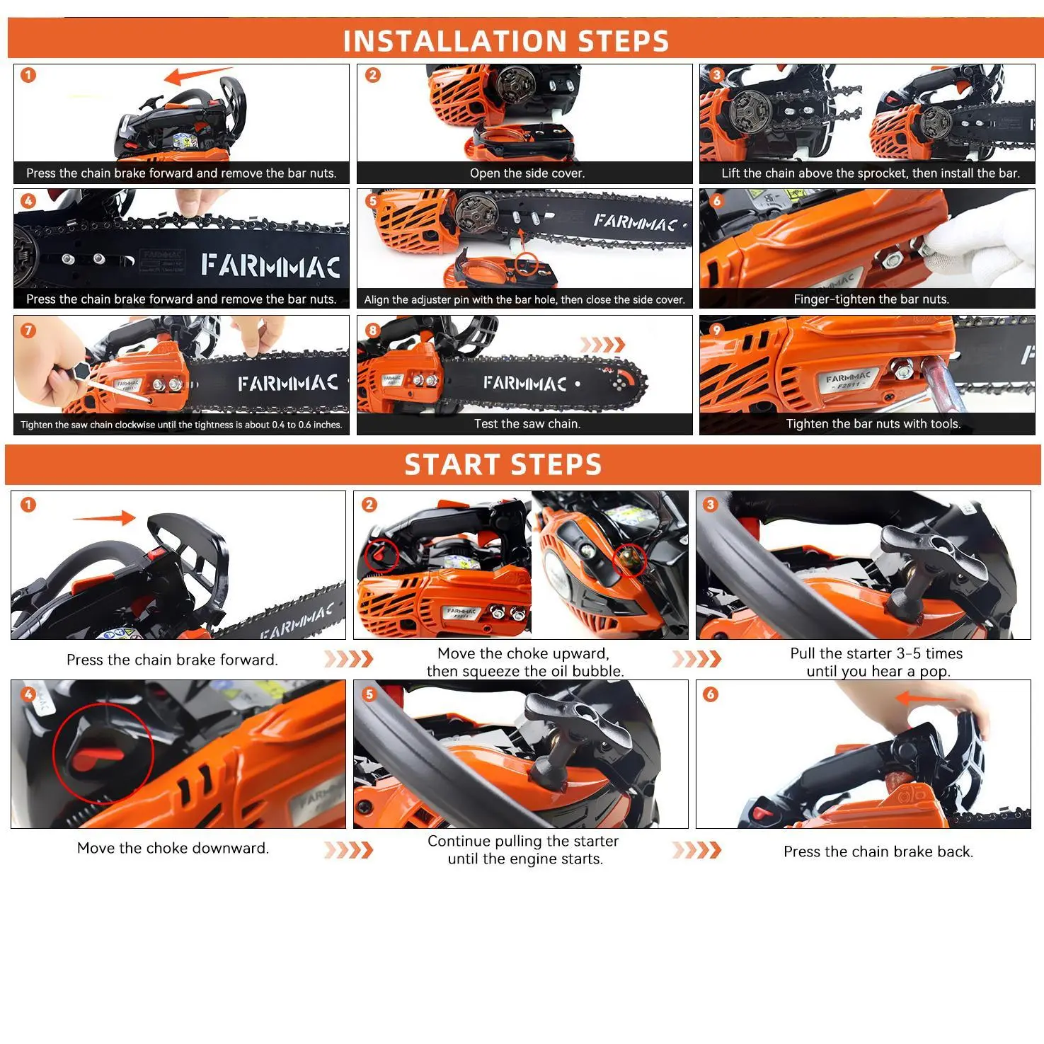 ·The gas chainsaw offers an ergonomic handle for maximum control and minimal fatigue. Its smart quick-rebound design makes starting effortless, ideal for professionals and DIY users.