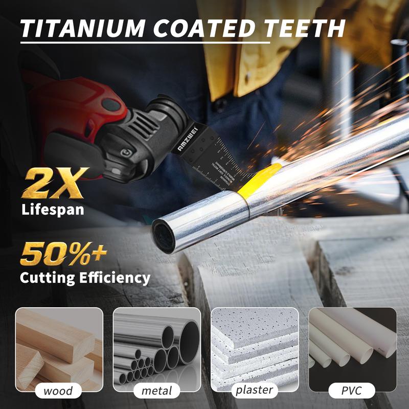 ·Durable Blades for Long-Lasting Performance : Crafted from high-quality materials like titanium, alloy steel and high-carbon steel, these oscillating tool blades undergo rigorous manufacturing processes, including high-temperature quenching. They are more heat and wear resistance, tough and long-lasting, easy cutting and durable.