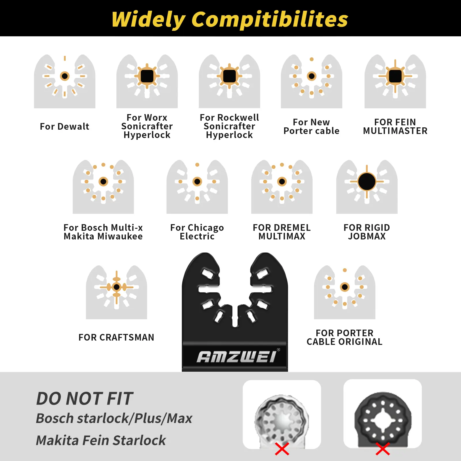 ·Widely Applications : Fit many oscillating tools on the market, Compatible with Fein Multimaster, Ryobi, Milwaukee, Hitachi, Black & Decker, Chicago, Craftsman and others. (Not suitable for Starlock systems). They can widely be used to cut metal, nails, wood, plastic, PVC, plasterboard etc.