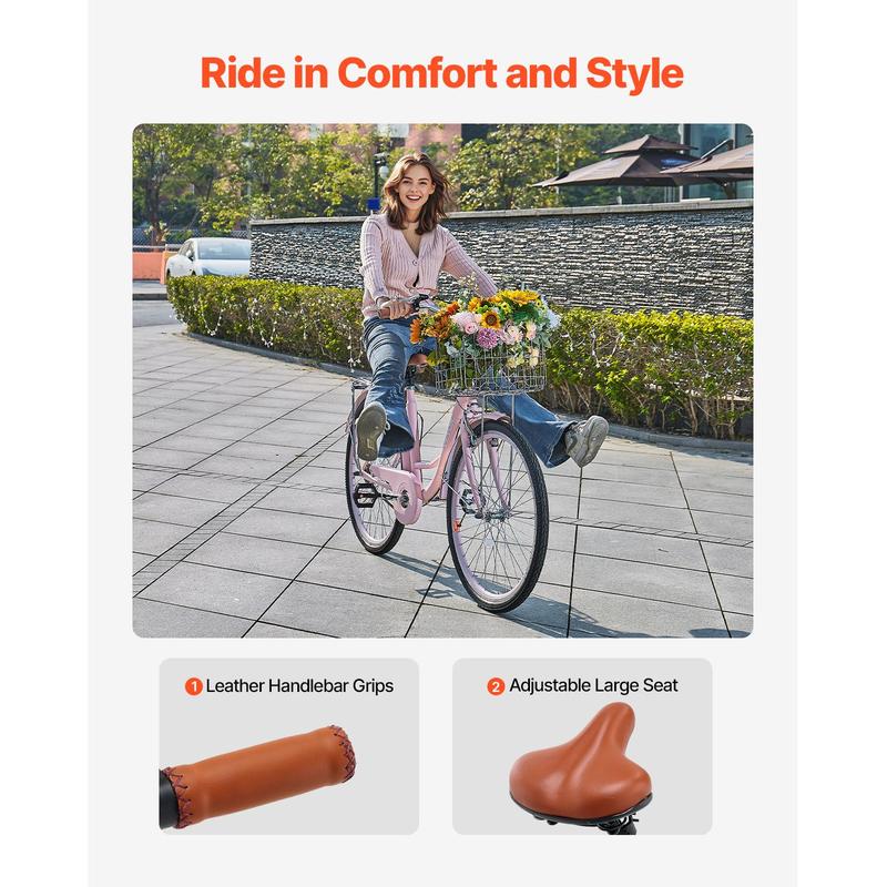 • Stylish & Comfortable: This cruiser bike features a wide, soft adjustable seat and ergonomic handlebars for ultimate comfort. Its upright riding style allows effortless use, whether wearing a dress or jeans, and adapts well to various terrains. Ideal for casual cruising, beach rides, city sightseeing, and short commutes.