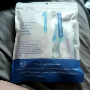 Although the floss stick is prone to breaking, the toothbrush effectively removes food particles between teeth, ensuring oral hygiene and preventing public embarrassment.