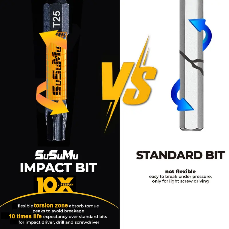 ·Hollow bits reduce weight, while solid bits offer enhanced torque support.