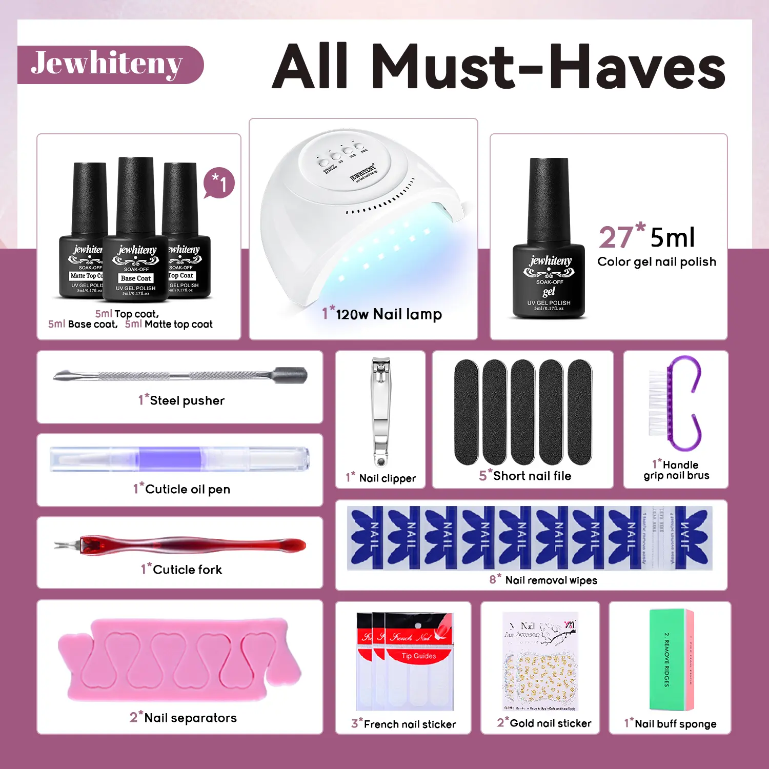 ·What You Get: This gel nail polish kit can be used for beginners or professionals: 120W Nail lamp *1, Gel Nail Polish*27, Top Coat*1, Base Coat*1, Matte Top Coat*1, and full set of nail manicure toos. High-quality gel nail kit for a cost-effective price, great for nail art fans.
