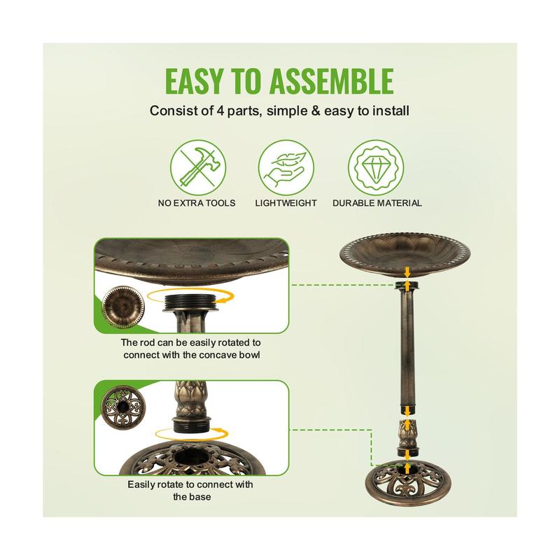 ·Includes bird bath basin and leg base