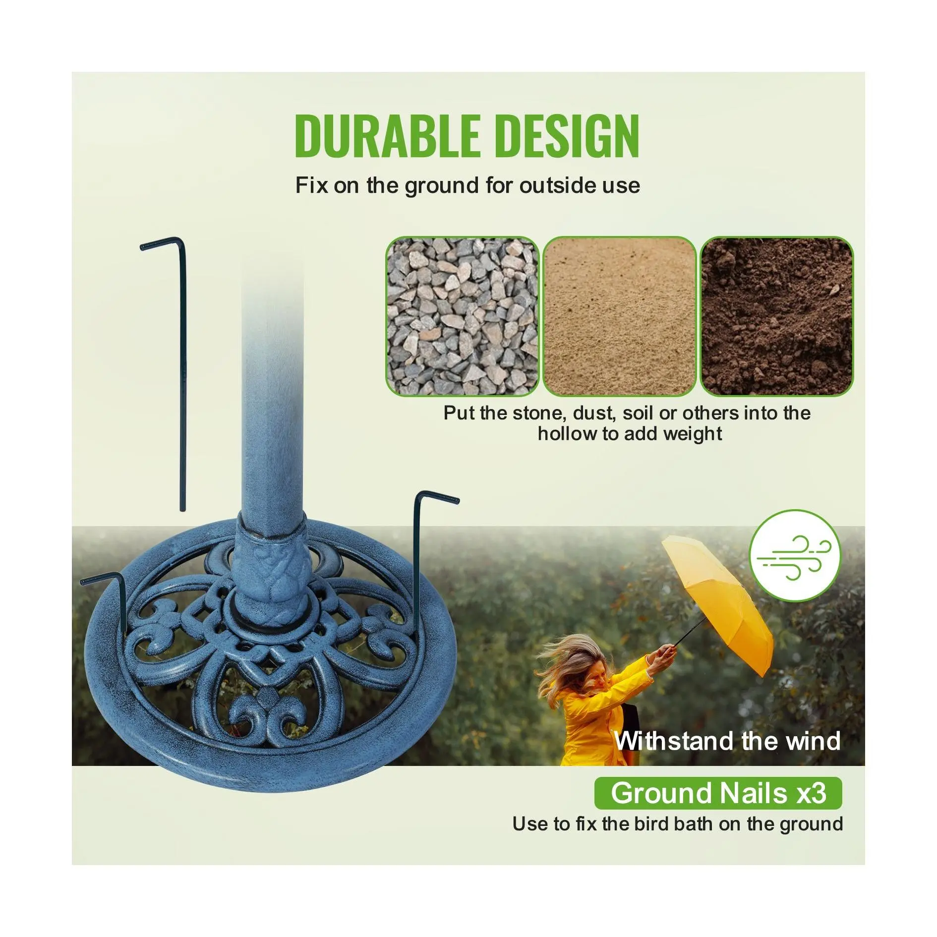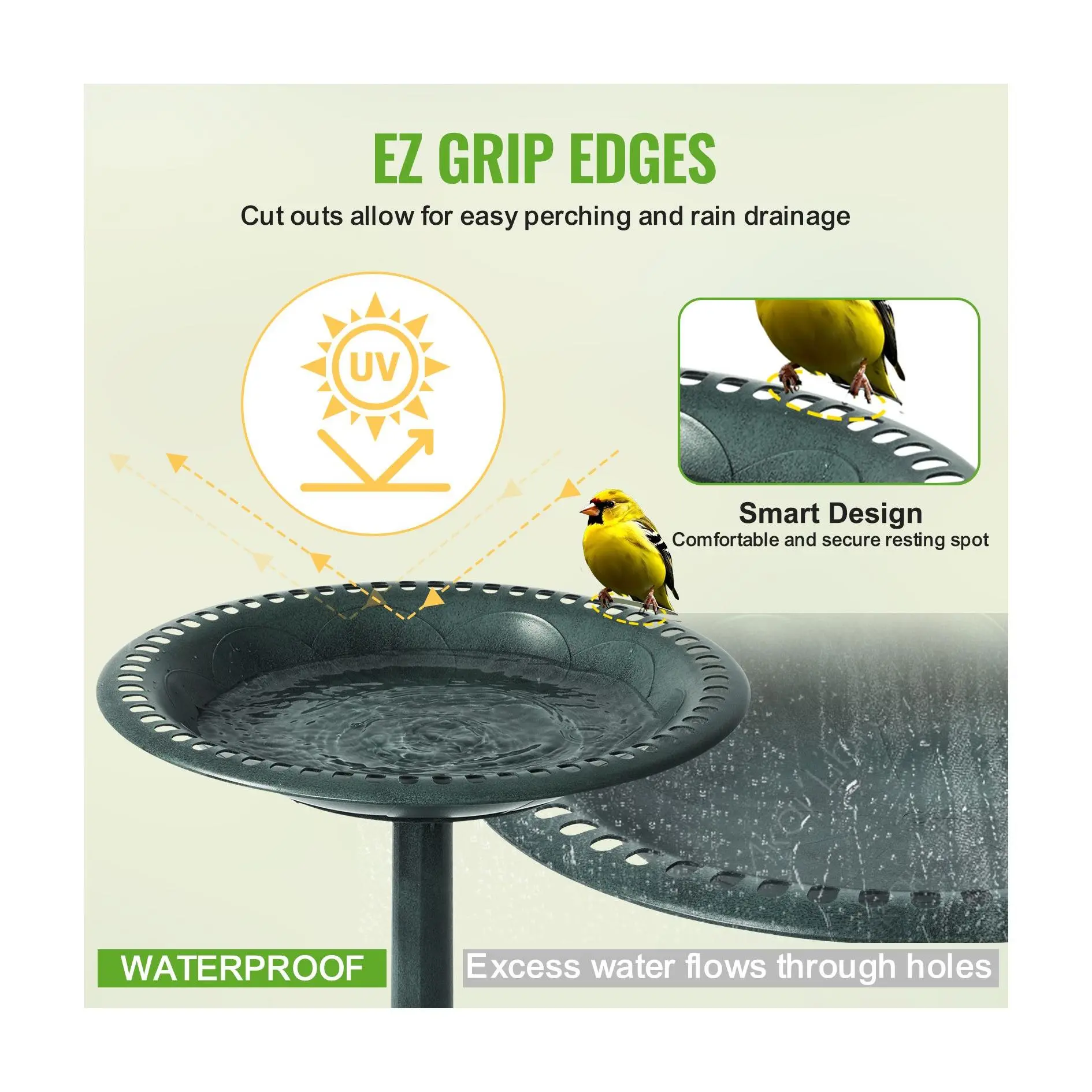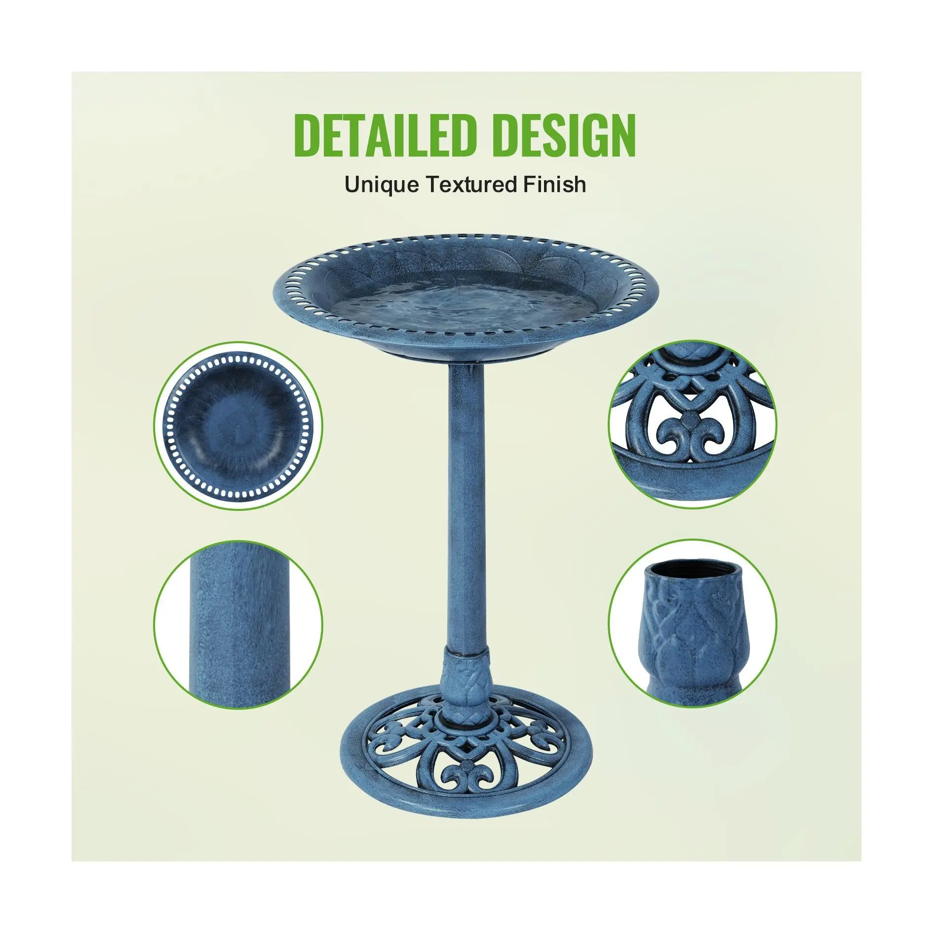 I have always wanted a bird bath - this one is perfect! Love the quality and color!!! The birds in my backyard love it too!