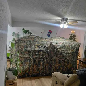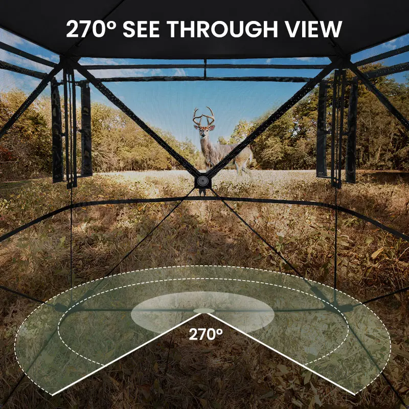 Such a great deer hut works so well and really is see through from inside. Hides well and super roomy