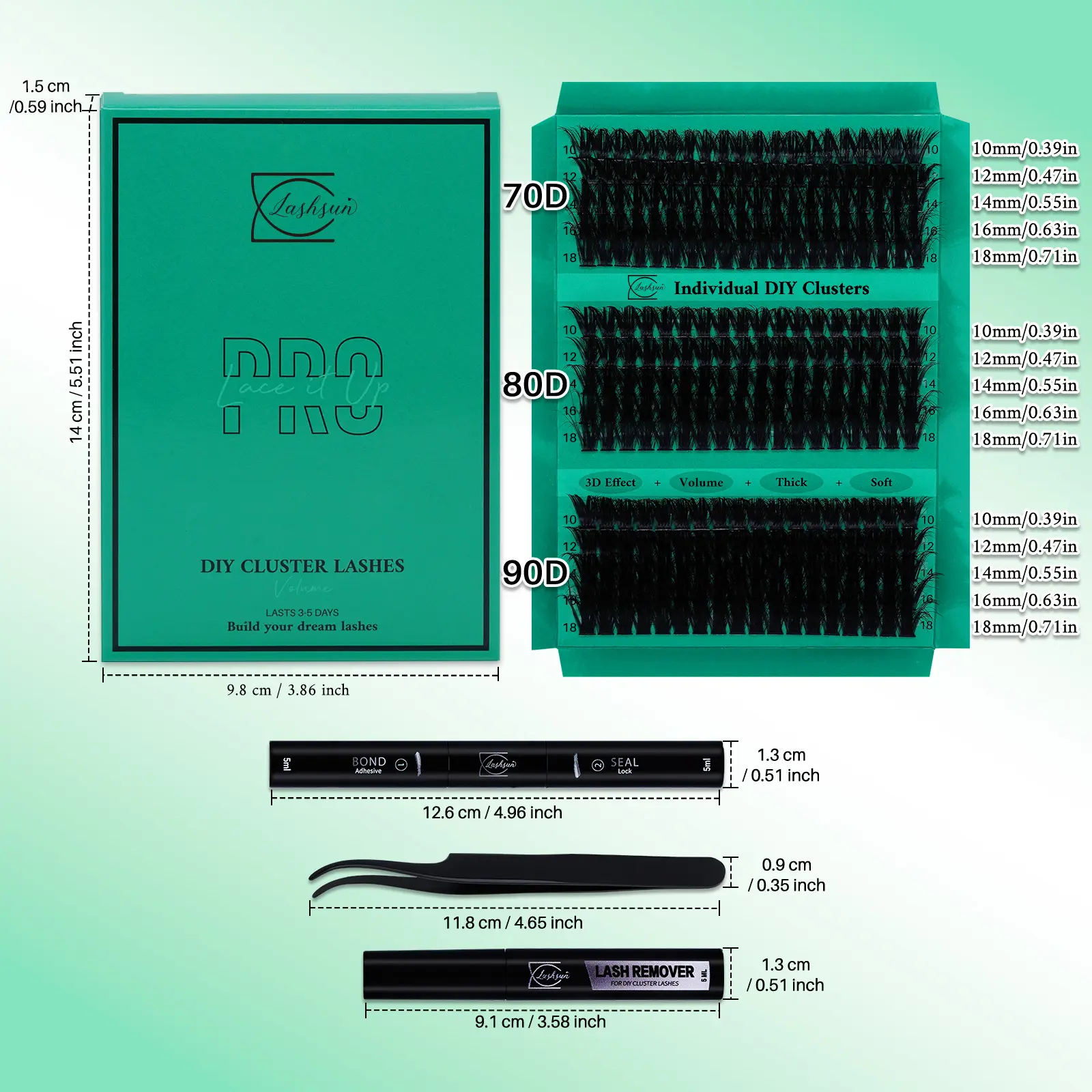 270Pcs D Curl 70D80D90D 3 Styles 10-18mm Mixed Length Volume & 3D Effect Kit Soft and Comfortable False Eyelashes Set Comes with Lash Bond&Seal Lash Remover And Tweezers, Perfect For DIY Eyelash Extensions At Home, Beginner friendly