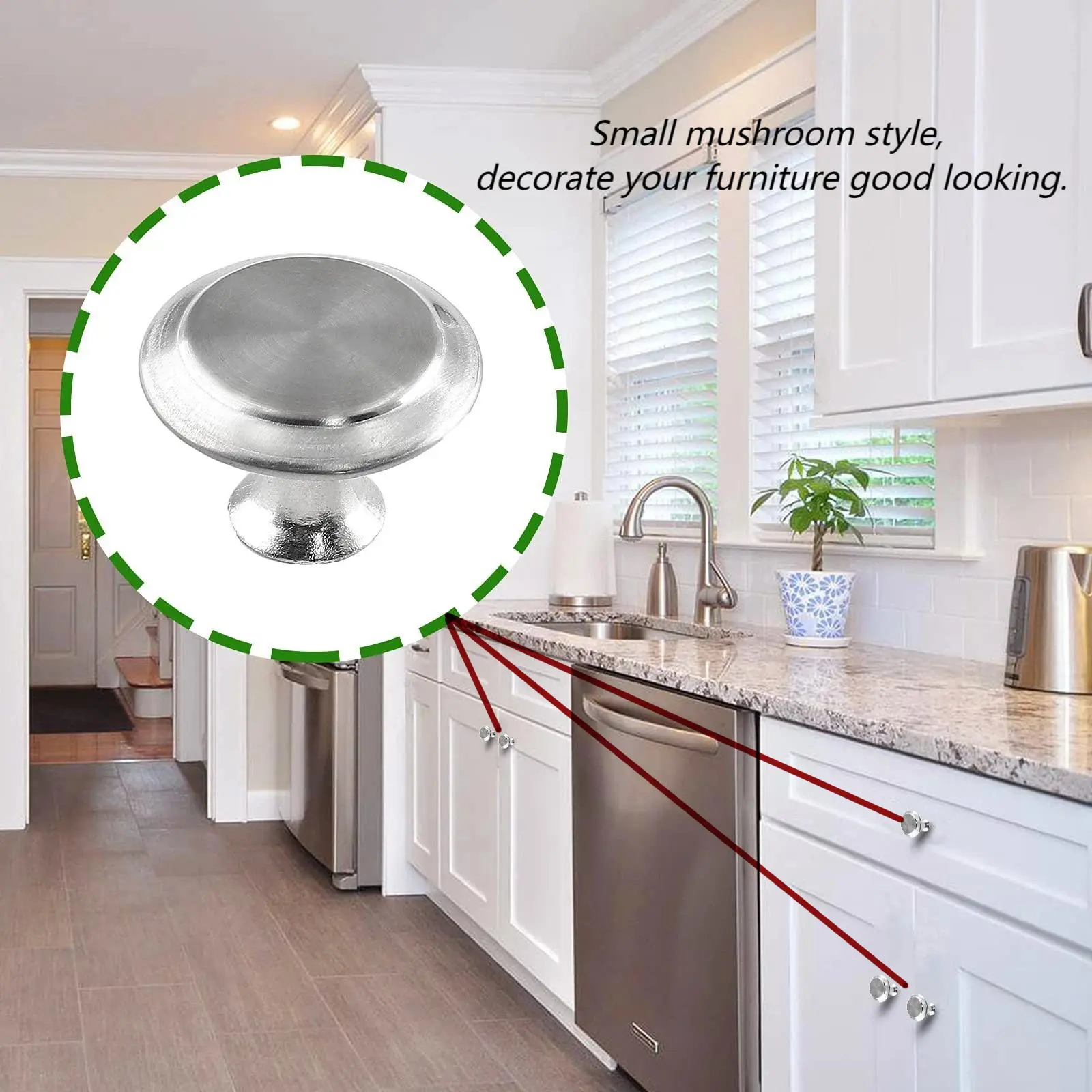 10Pcs 27mm Drawer Hardware Silver stainless steels Drawer Pulls Knobs Modern Single Hole Mushroom Drawer Handle Pulls for Dresser Drawers