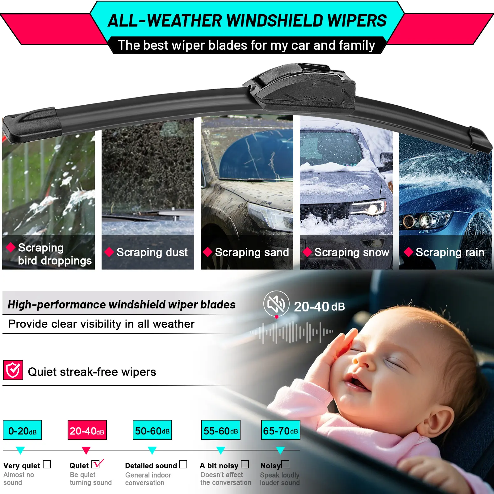·Innovative Design: High-tensile memory spring steel sheets combined with red armor provide stable support and even pressure distribution to better contact the windshield, with no gaps or noise during operation. Tested through 1.5 million cycles.