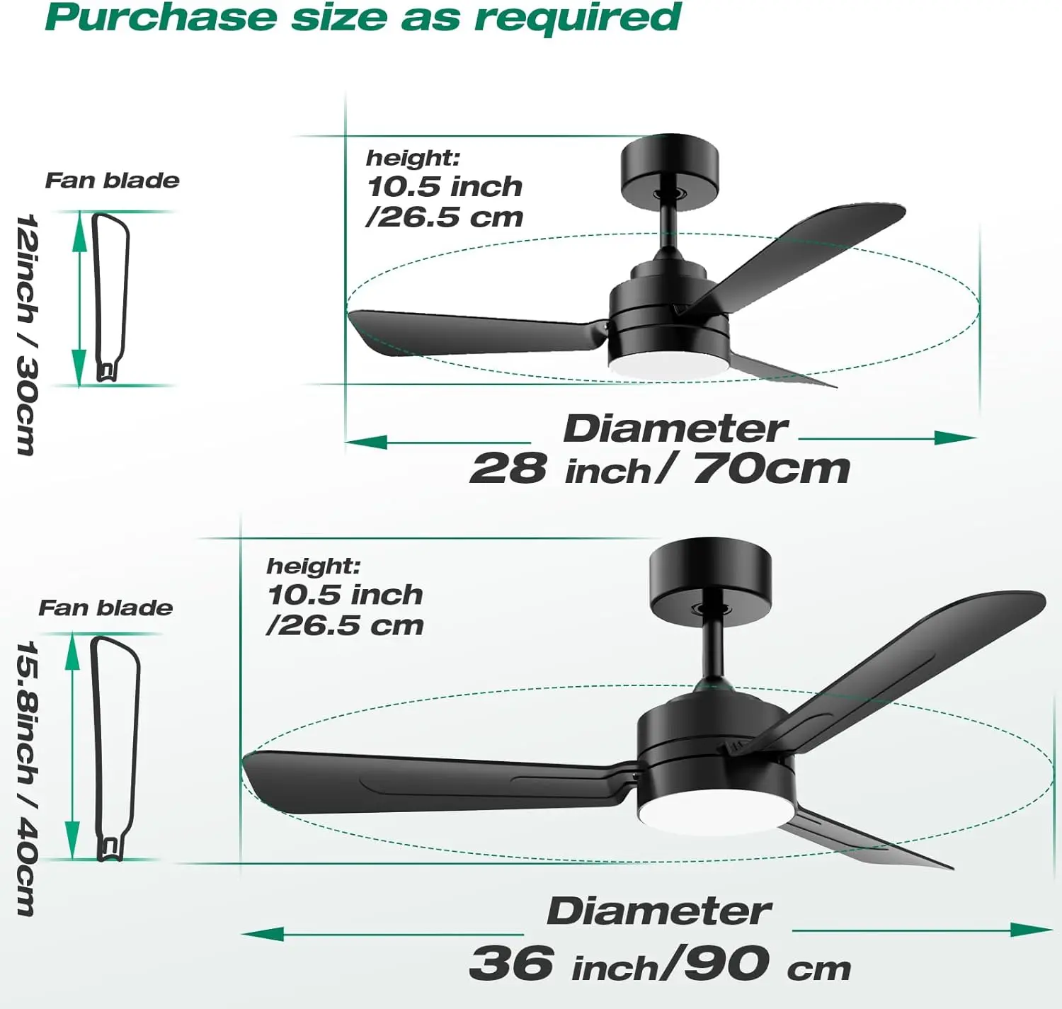 ·28” Compact Size & Universal Fit:This small ceiling fan with lights in sleek black is perfectly sized for small to medium spaces like bedrooms, kitchens, and garages, adding functional style without taking up too much space.