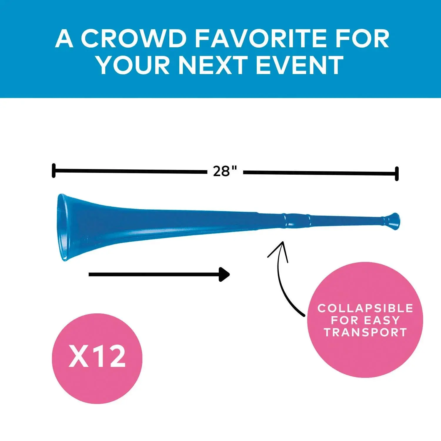 • COLLAPSIBLE FOR EASY TRANSPORT: Measuring 28" when extended, each horn collapses for convenient carrying to games, parades, or rallies.br