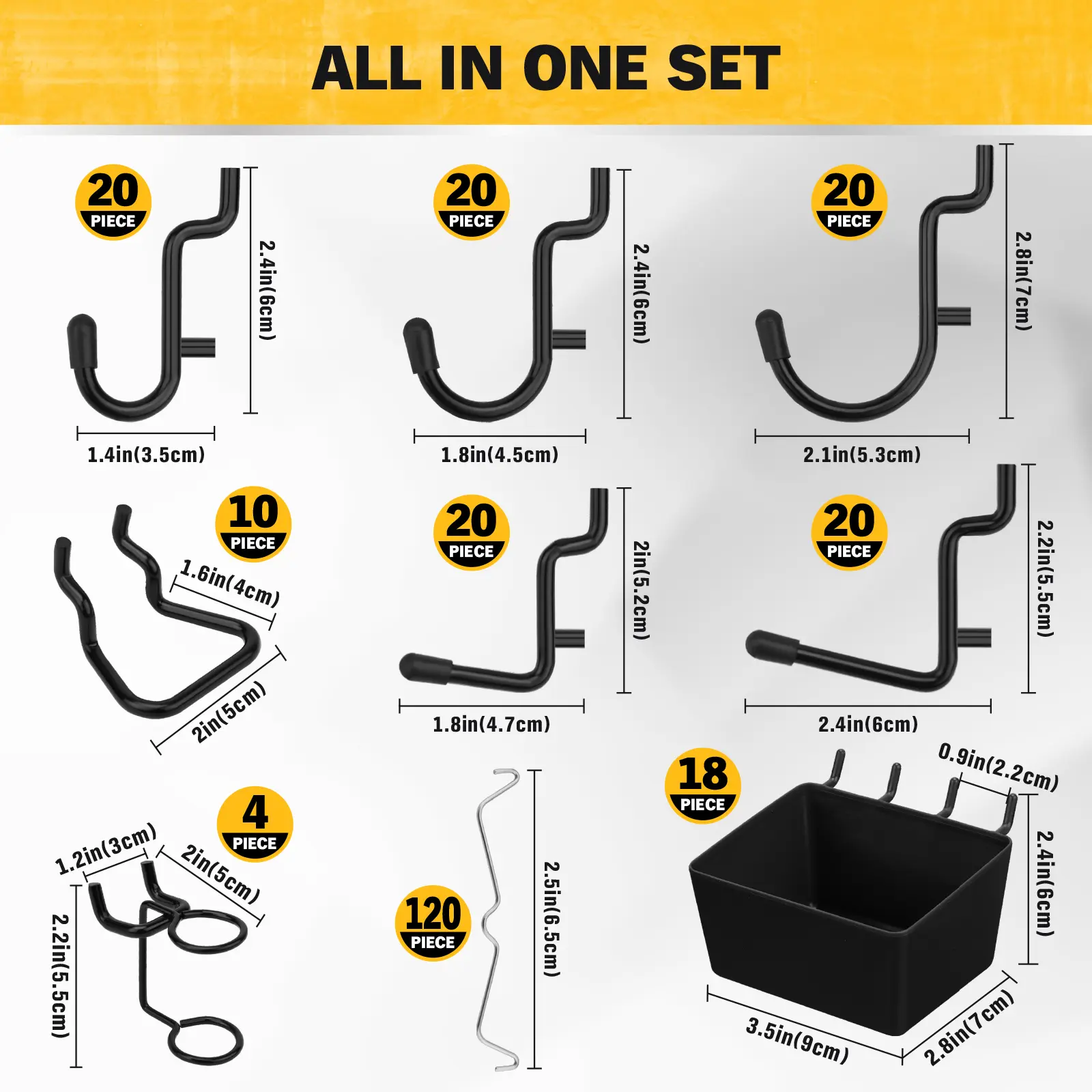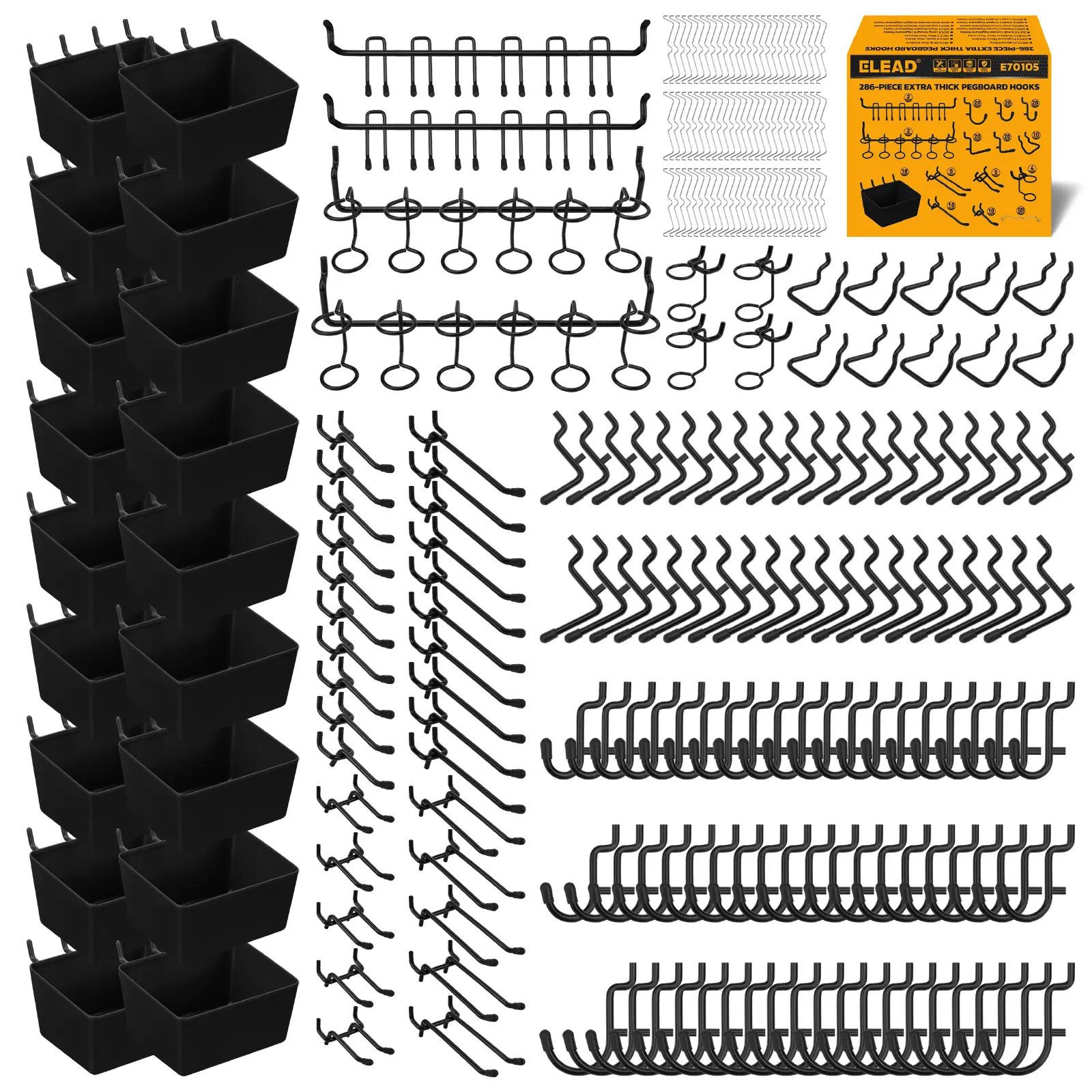 ·ULTIMATE VALUE PACK – A massive 286-piece bundle featuring 14 versatile hook types and 18 heavy-duty bins. Turn any pegboard wall into a fully equipped, clutter-free storage station—perfect for organizing tools, hardware, and small parts with ease.