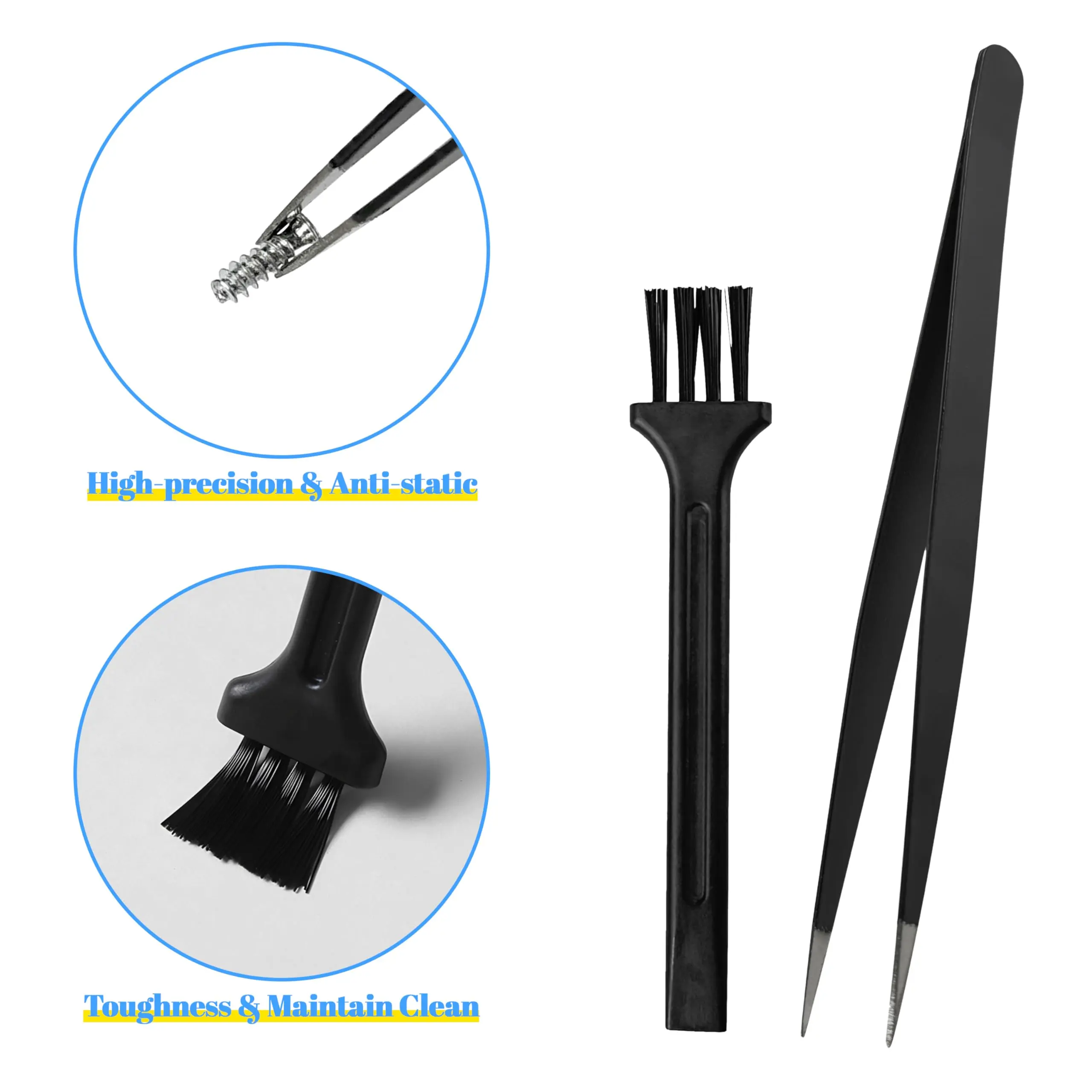 All accessories are embedded in the sponge inside the box, making storage and carrying easy. This ensures you always have the necessary tools at hand for any electronics repair or DIY project.