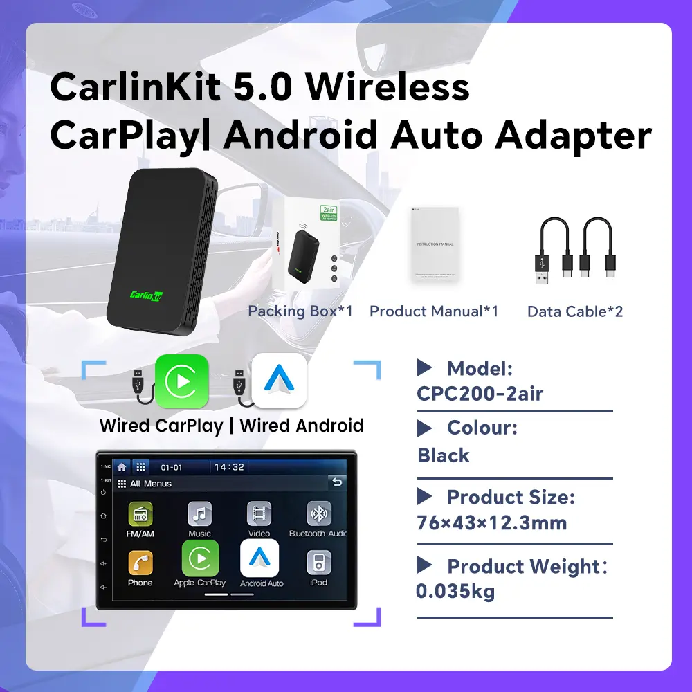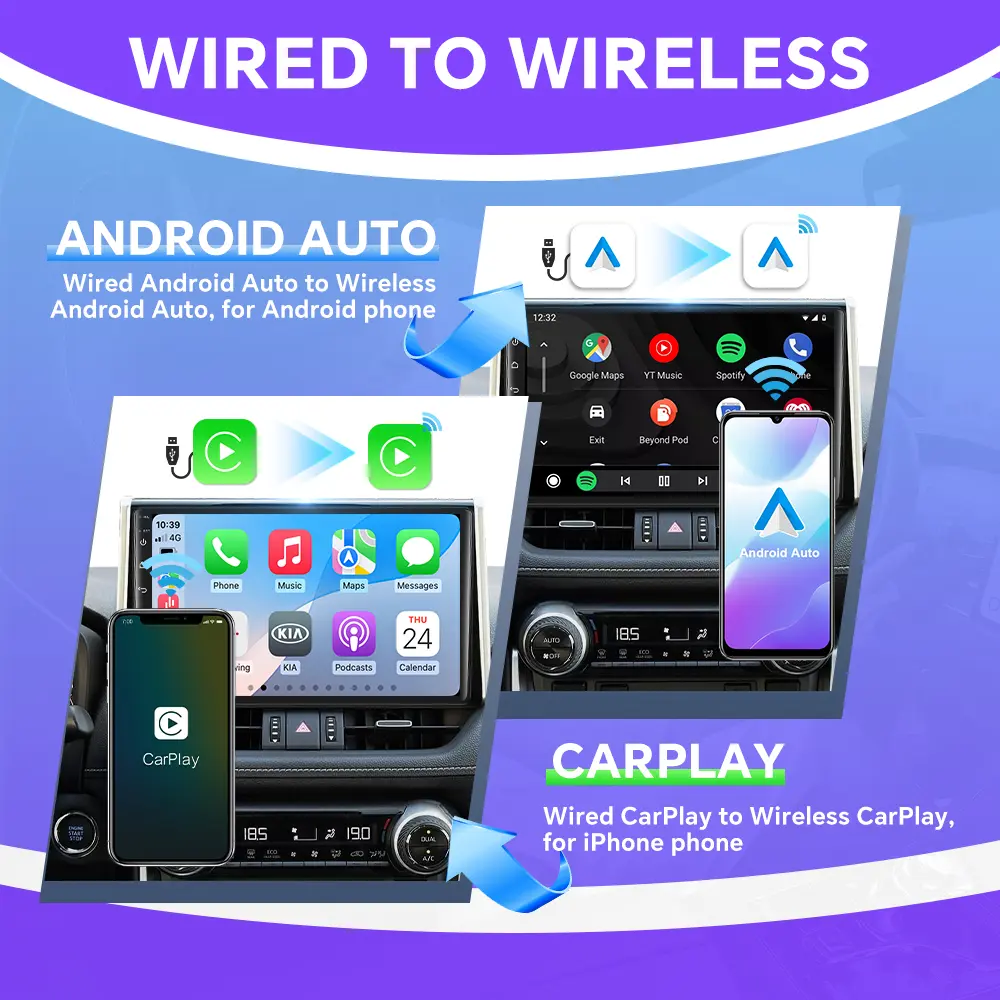 ·Supported Vehicles: factory wired CarPlay or Wired Android Auto cars (OEM Car infotainment with Wired CP/AA)