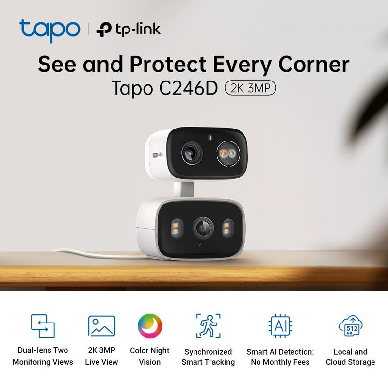 Provide professional-grade security for your home and business. Both the TP-Link Tapo C246D and C216 feature cutting-edge 2K HD clarity, advanced AI person detection, and free local storage options with no monthly subscriptions required. Whether you need simultaneous dual-lens monitoring or 360° panoramic auto-tracking, we have the perfect solution for your precise security needs.