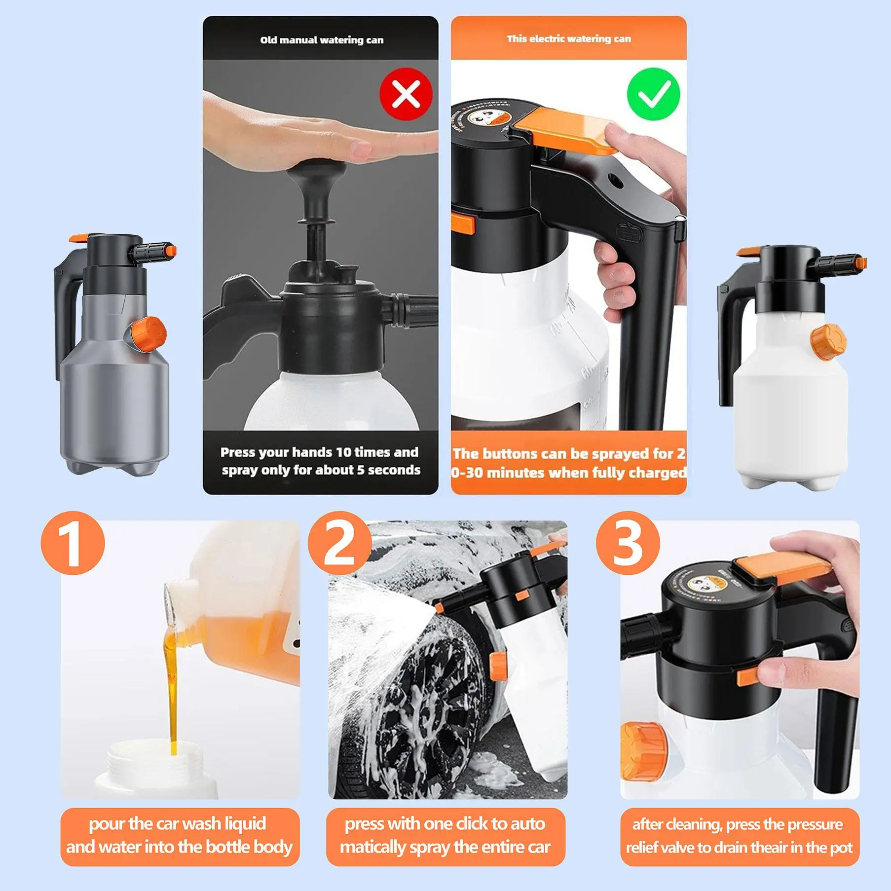 2L Electric Foam Gun with 70° Wide Spray Angle, Multi-Functional Large Capacity Battery, Ideal for Car, Kitchen, Home Cleaning #dustersforcleaning #cleaningessentials #cleaningtoolsyouneed #blowoutboostionicthermalbrush #waterproofsettingspray #3in1glasscleaner #portablecarwasher #electricbathroomscrubber #flamingoshavekit #rechargeablecarcleaner