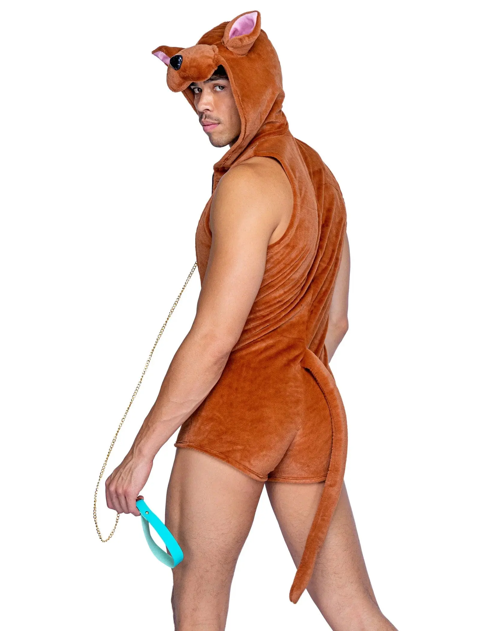 ·Includes Fleece Zip-Up Hooded Dog Look Jumpsuit with Stuffed Tail and Collar with Leash
