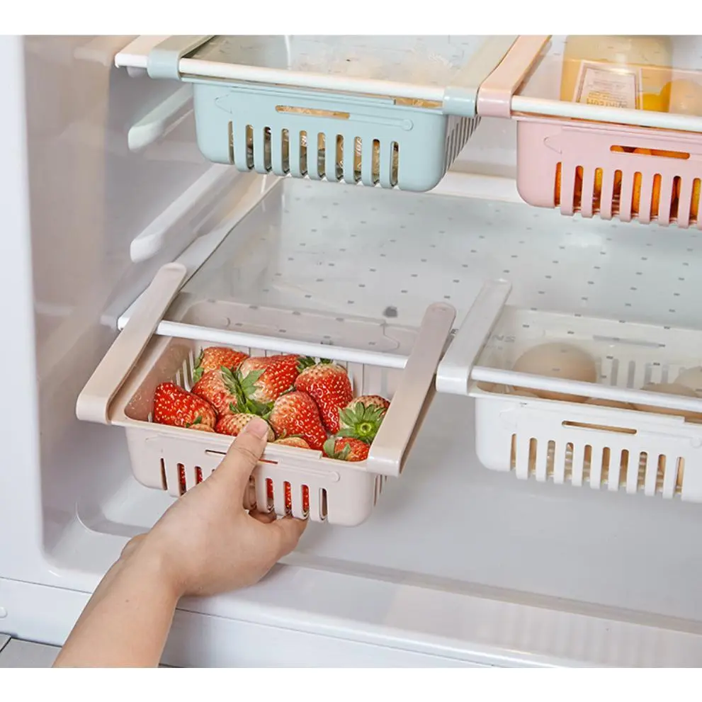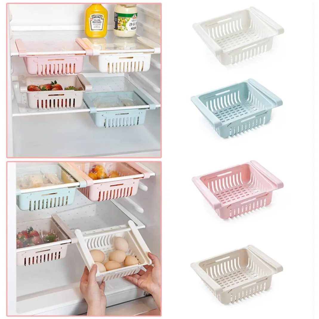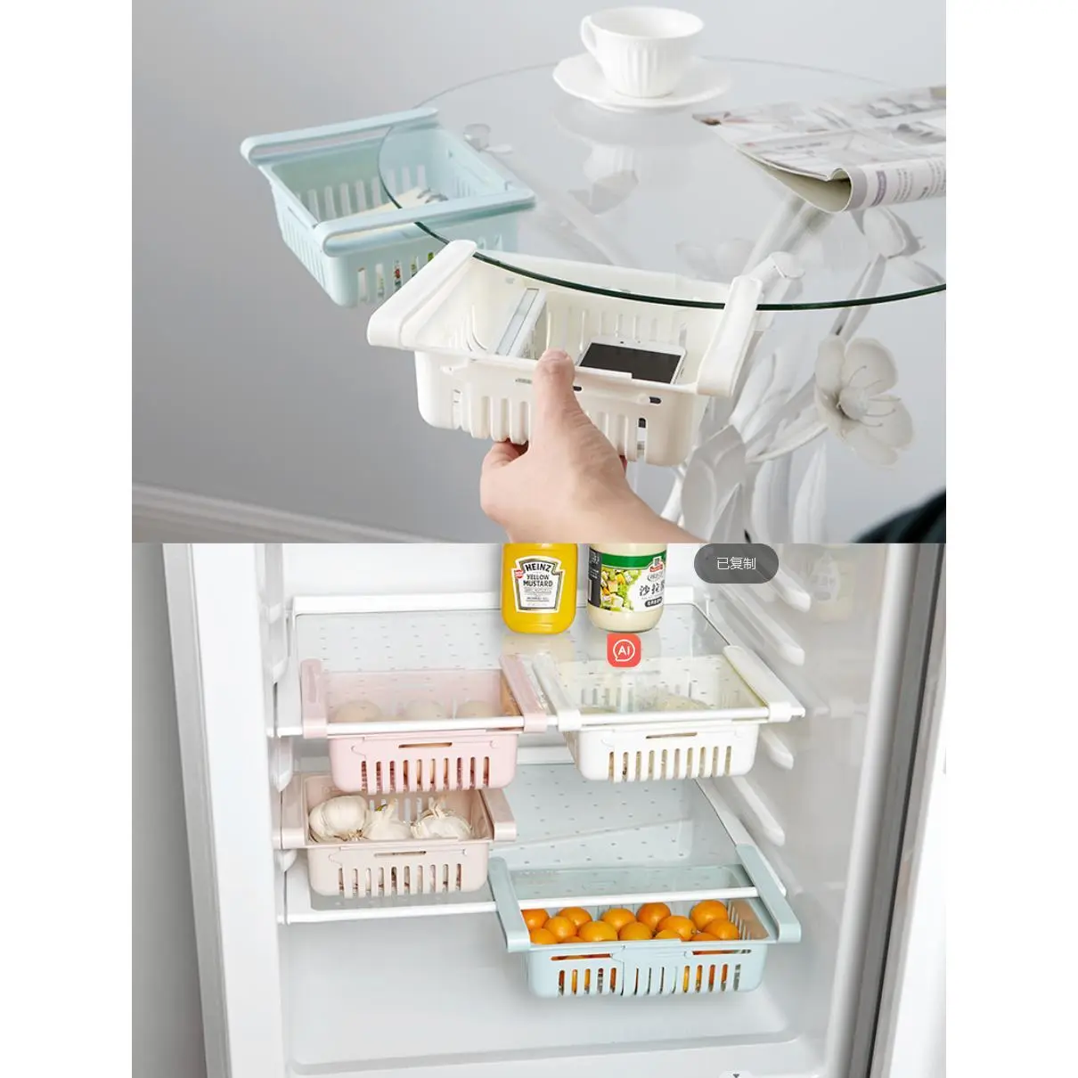 2pc Retractable Drawer Storage Basket Set - Space-Saving Organizer for Fridge & Kitchen - Convenient, Easy-to-Use, Durable - Home Organization Solution