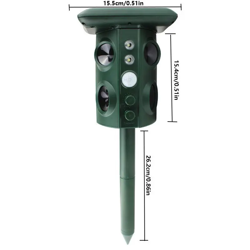 【Frequency Variation】: Utilizes variable frequency ultrasonic waves, making it more effective at deterring a range of animals, including squirrels and bats.