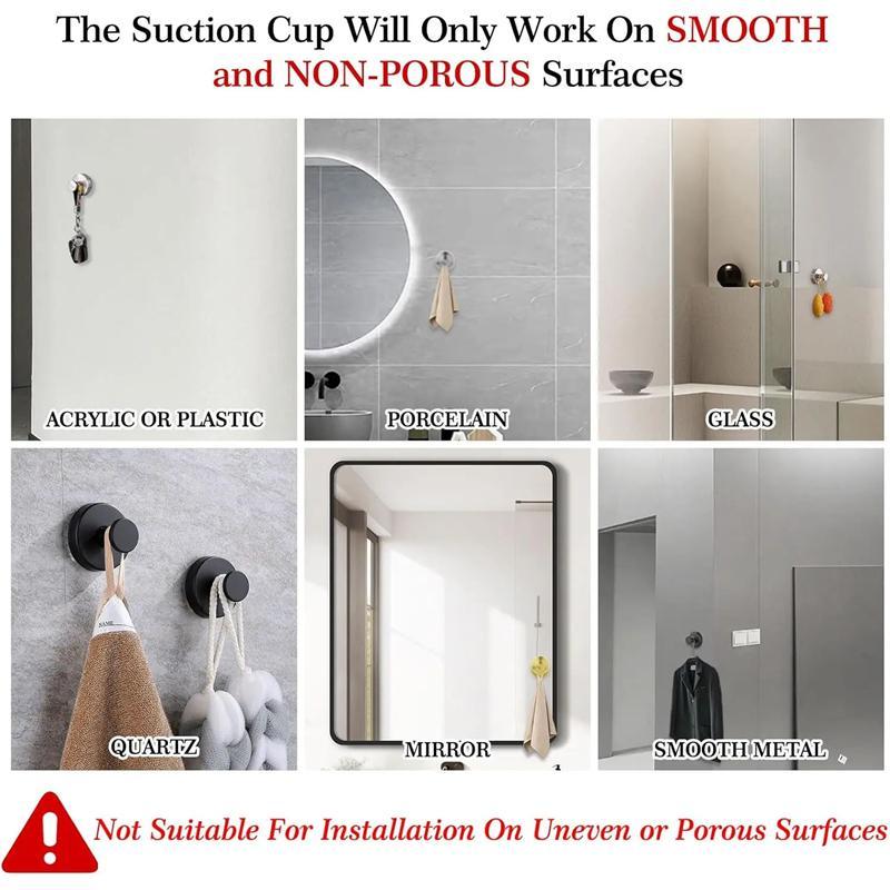 - Strong Suction: The sticky back of this shower hook suction cup complements the adsorption technology. It can be firmly attached to glass, tiles, mirrors and other smooth surfaces.