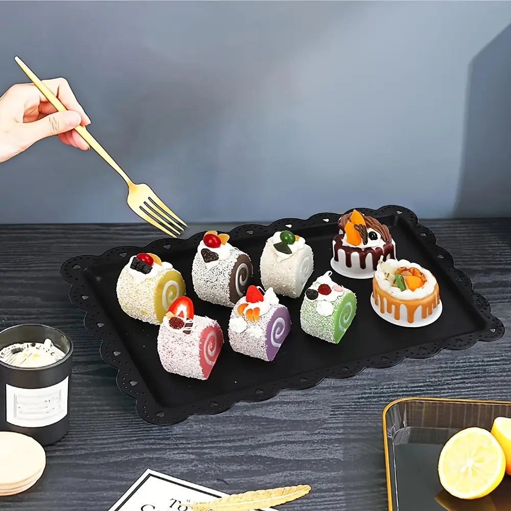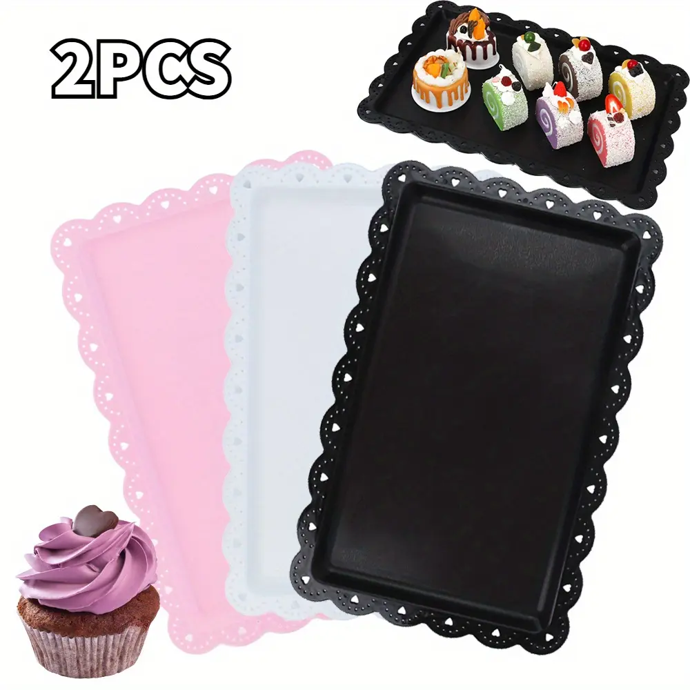2pcs Plastic Display Trays, Home Fruit Food Tray, European Style Cake Stand, Rectangular Plates, Cupcake Dessert Dish, Party Wedding Snack Plate, Salad Serving Plates