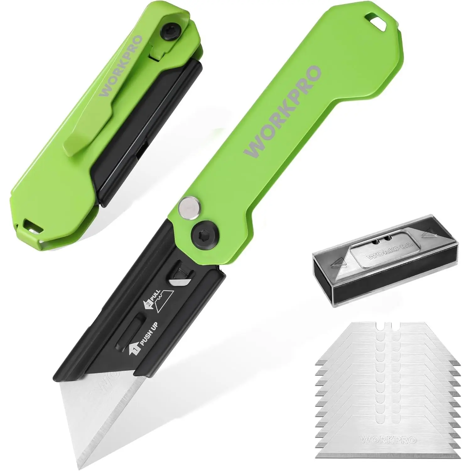 2PCS Folding Utility Knife, Mini Box Cutter with Quick Open Axis Lock, Quick Change Blade Razor Knife, Foldable Small Pocket Knife with Belt Clip, 2 Packs with 10 Extra Blades