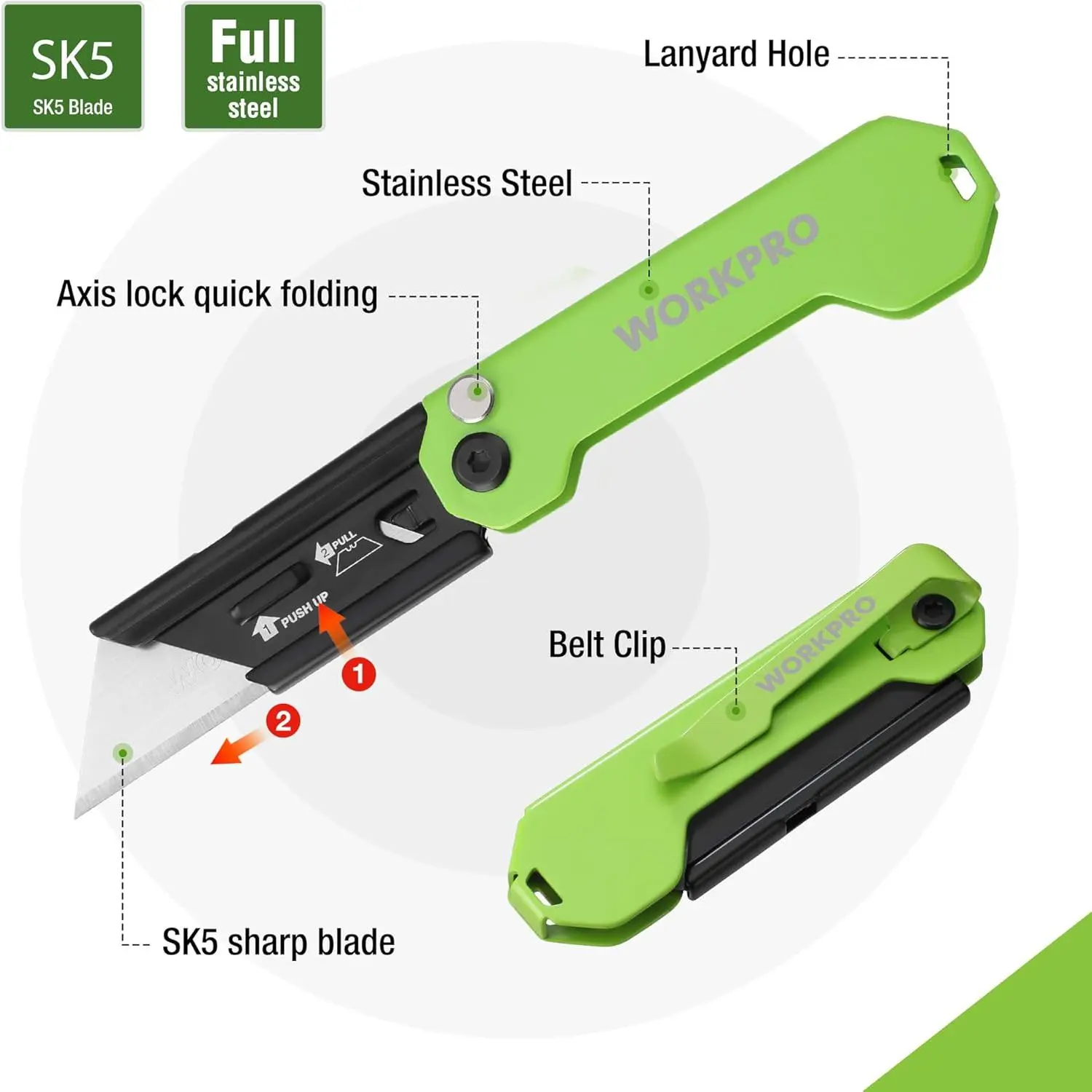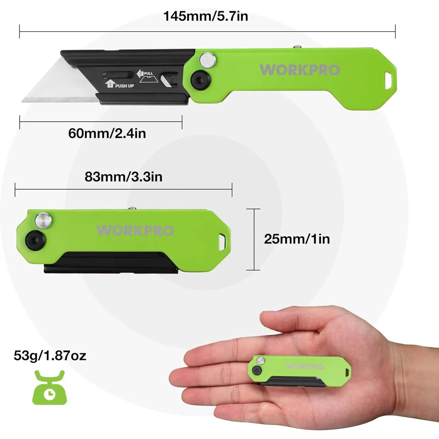 Quick blade change mechanism makes it easier and faster to change the blades, and it accepts all standard utility knife blade